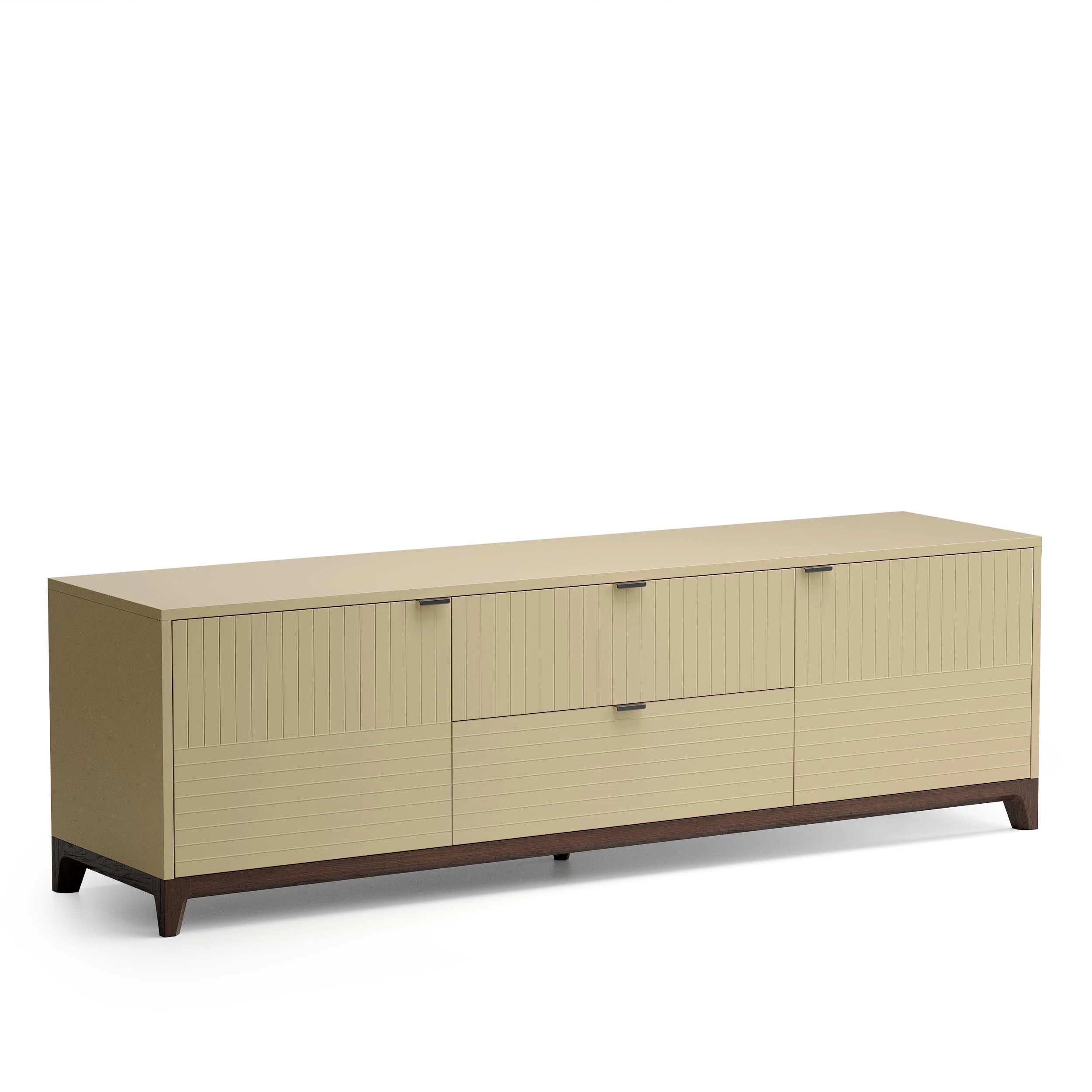 Внутреннее наполнение тумбы состоит из двух выдвижных ящиков и двух боковых секций с полками, положение которых можно регулировать. Отличительной особенностью мебели из серии CASE является вариативность ее исполнения. Выбирайте оттенок эмали, материал корпуса, тонировку основания и ножек, а также дизайн гравировки. Кроме того, вы можете заказать тумбу под ТВ, которая будет полностью покрыта натуральным шпоном дуба.