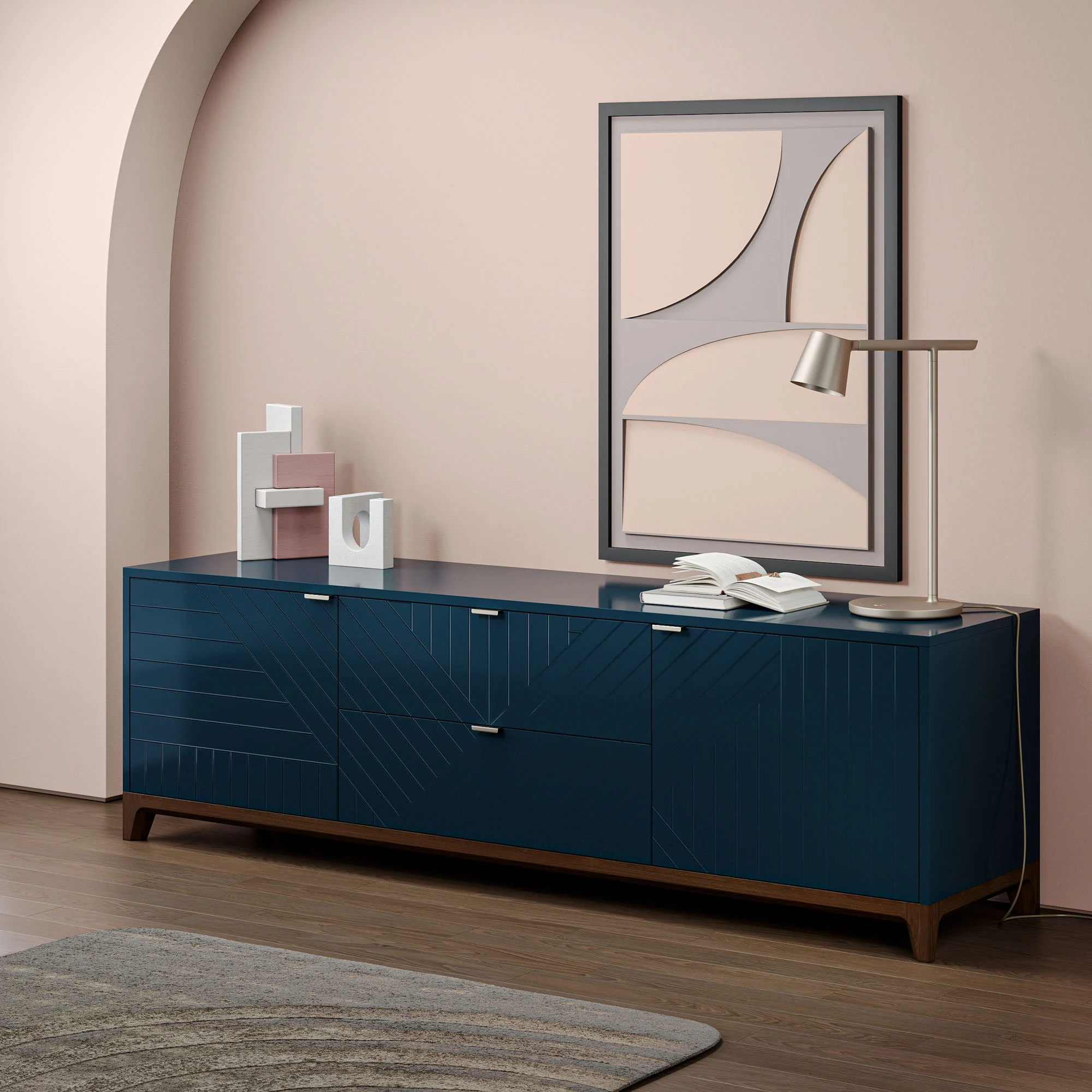 Тумба под ТВ с увеличенной длиной, станет украшением просторной гостиной и позволит организовать комфортное хранение вещей.