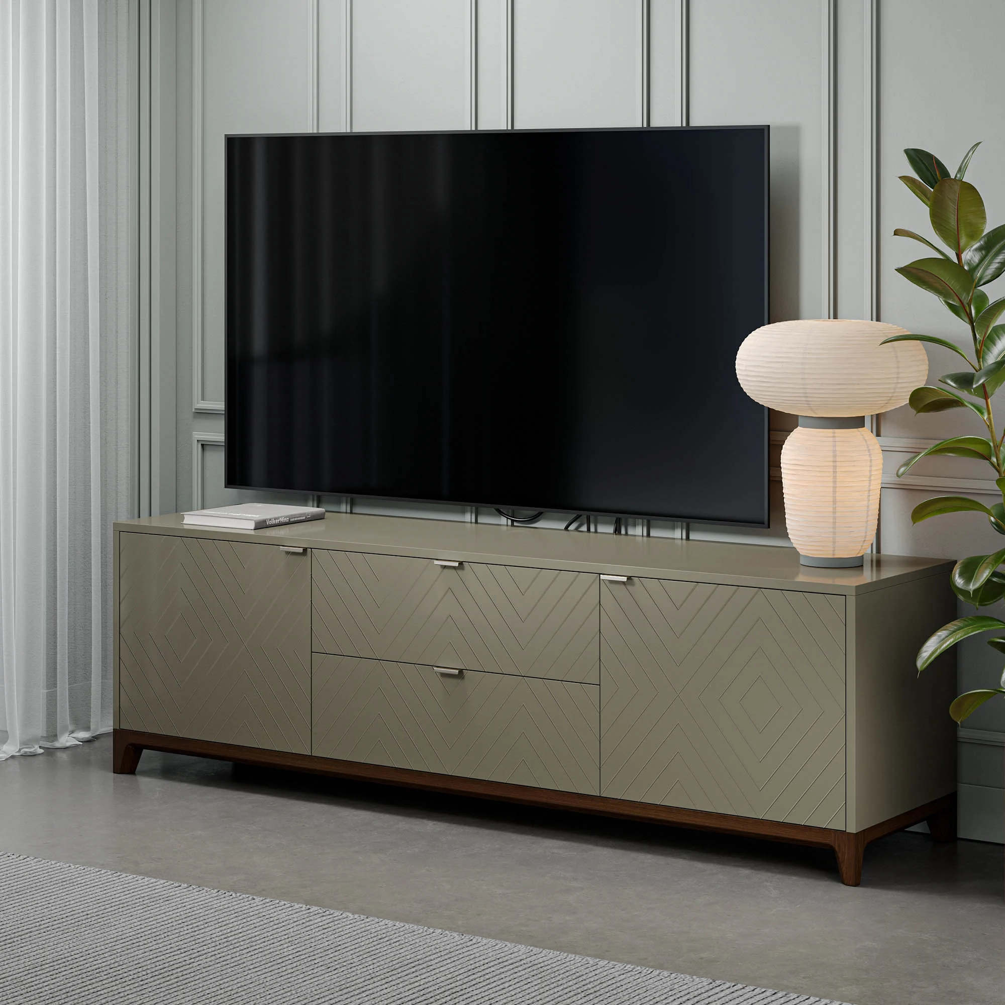 Тумба под ТВ с увеличенной длиной, станет украшением просторной гостиной и позволит организовать комфортное хранение вещей.
