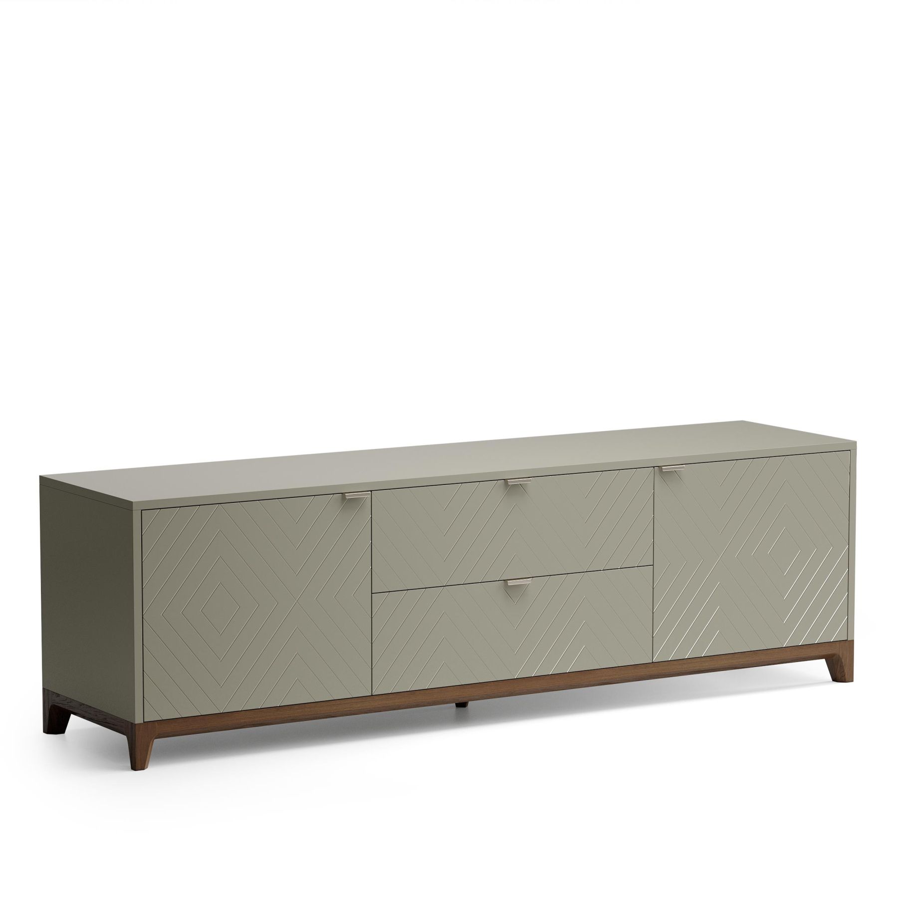 Внутреннее наполнение тумбы состоит из двух выдвижных ящиков и двух боковых секций с полками, положение которых можно регулировать. Отличительной особенностью мебели из серии CASE является вариативность ее исполнения. Выбирайте оттенок эмали, материал корпуса, тонировку основания и ножек, а также дизайн гравировки. Кроме того, вы можете заказать тумбу под ТВ, которая будет полностью покрыта натуральным шпоном дуба.