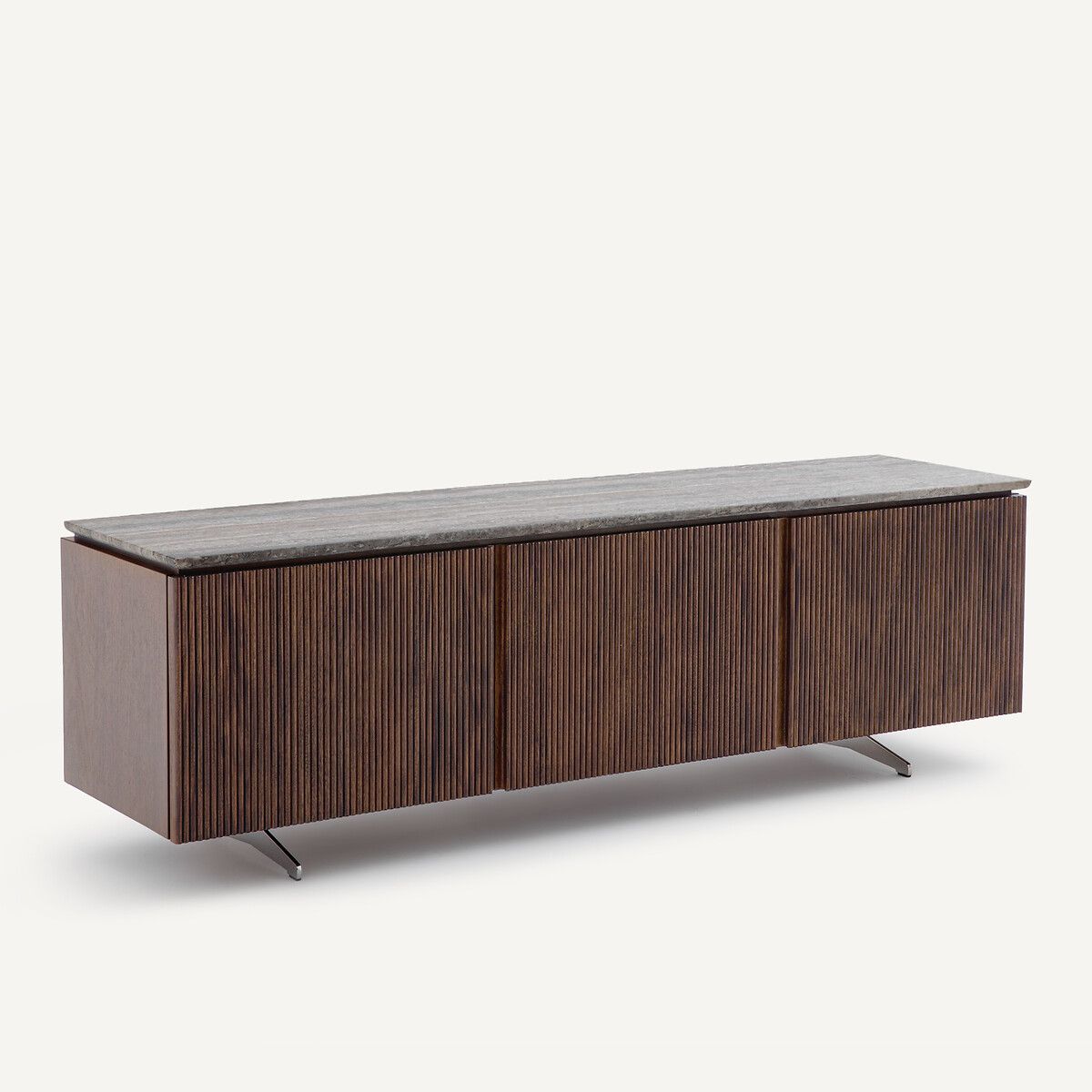 Три дверцы с системой плавного закрывания и мелкими планками из массива ореха;