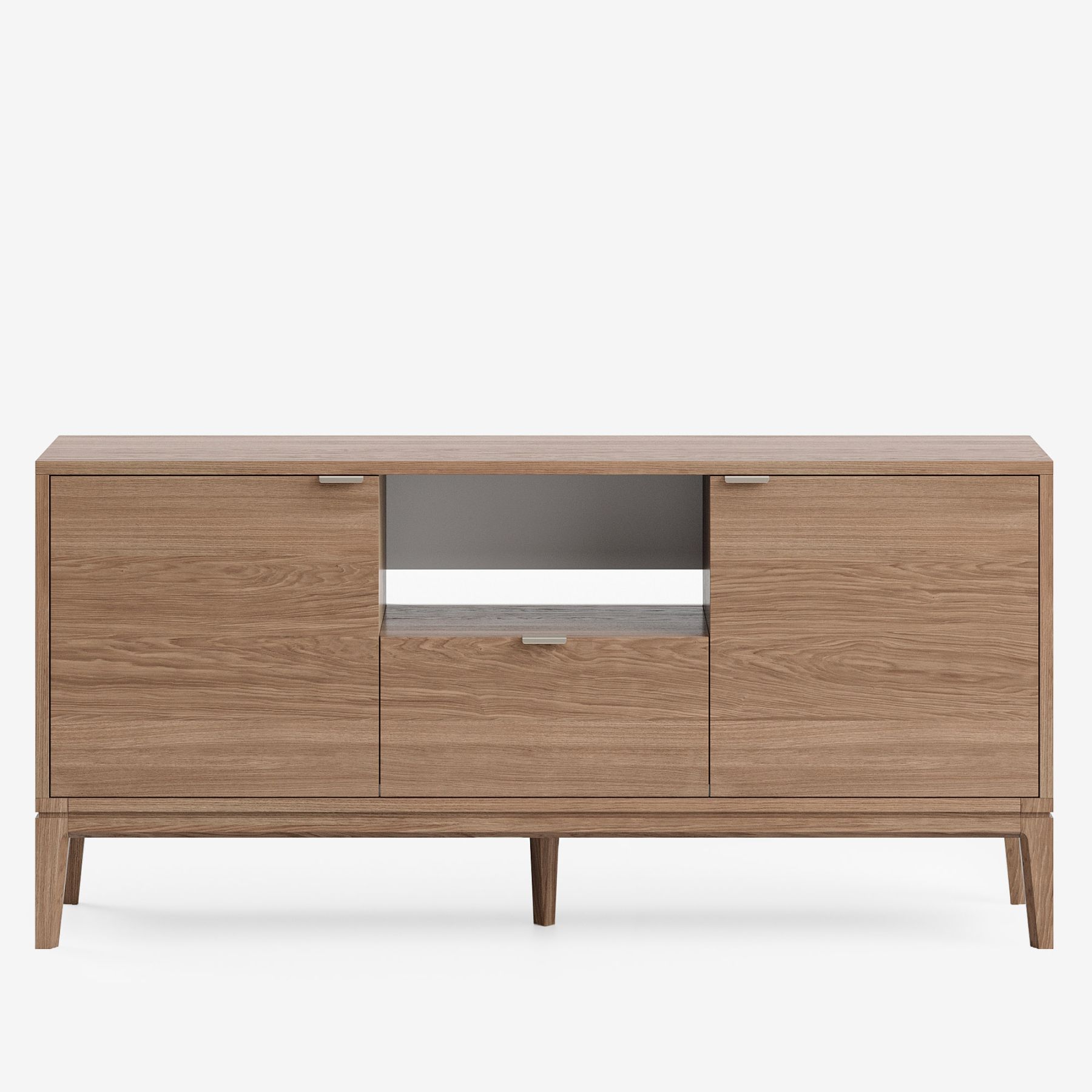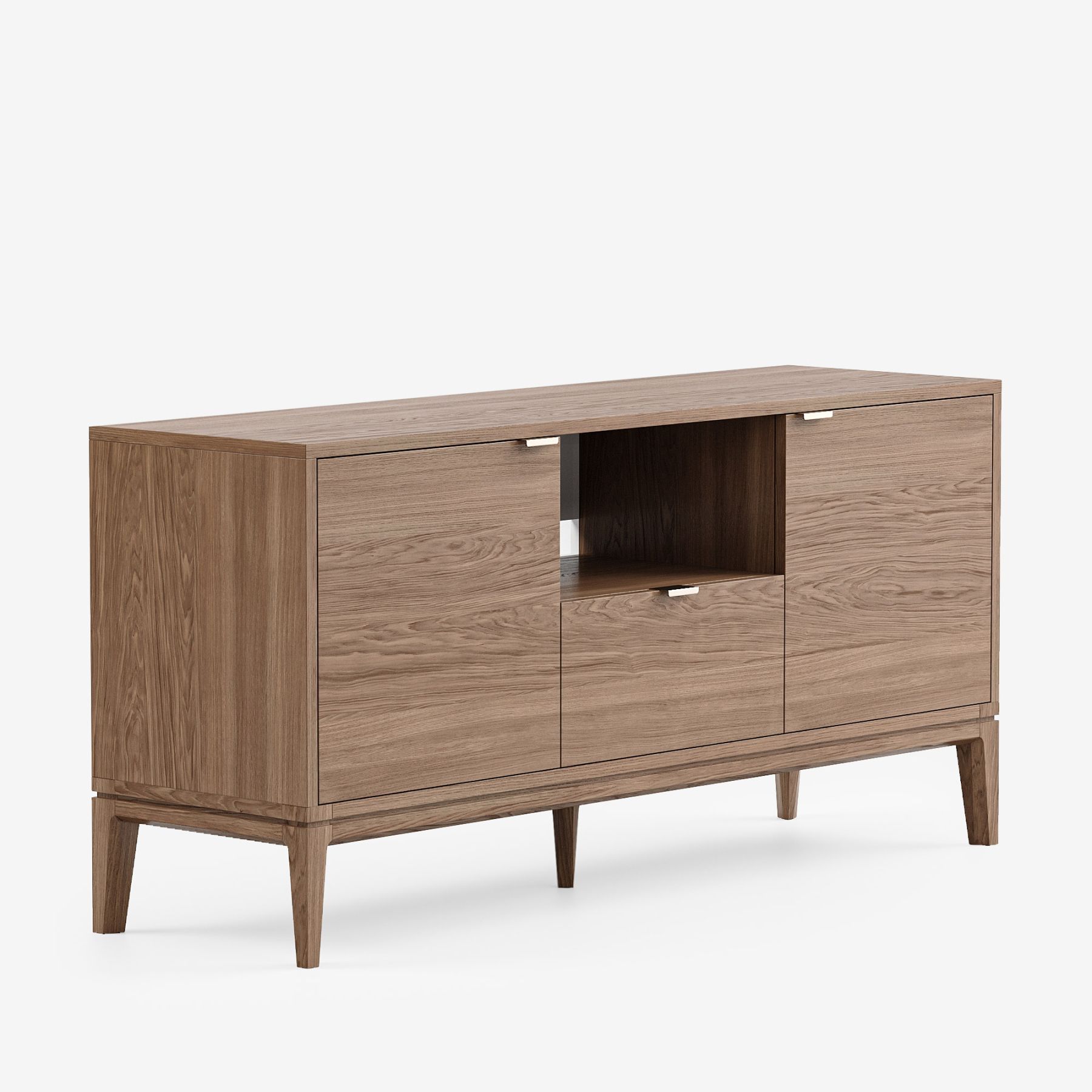 Простой и лаконичный дизайн, гравировка на фасадах, изящные ножки из массива дерева, продуманные габариты гармонично сочетаются в этой тумбе под ТВ. Коллекции книг, журналов и другие приятные мелочи, включая объемные предметы, вы сможете разместить внутри данной ТВ тумбы.