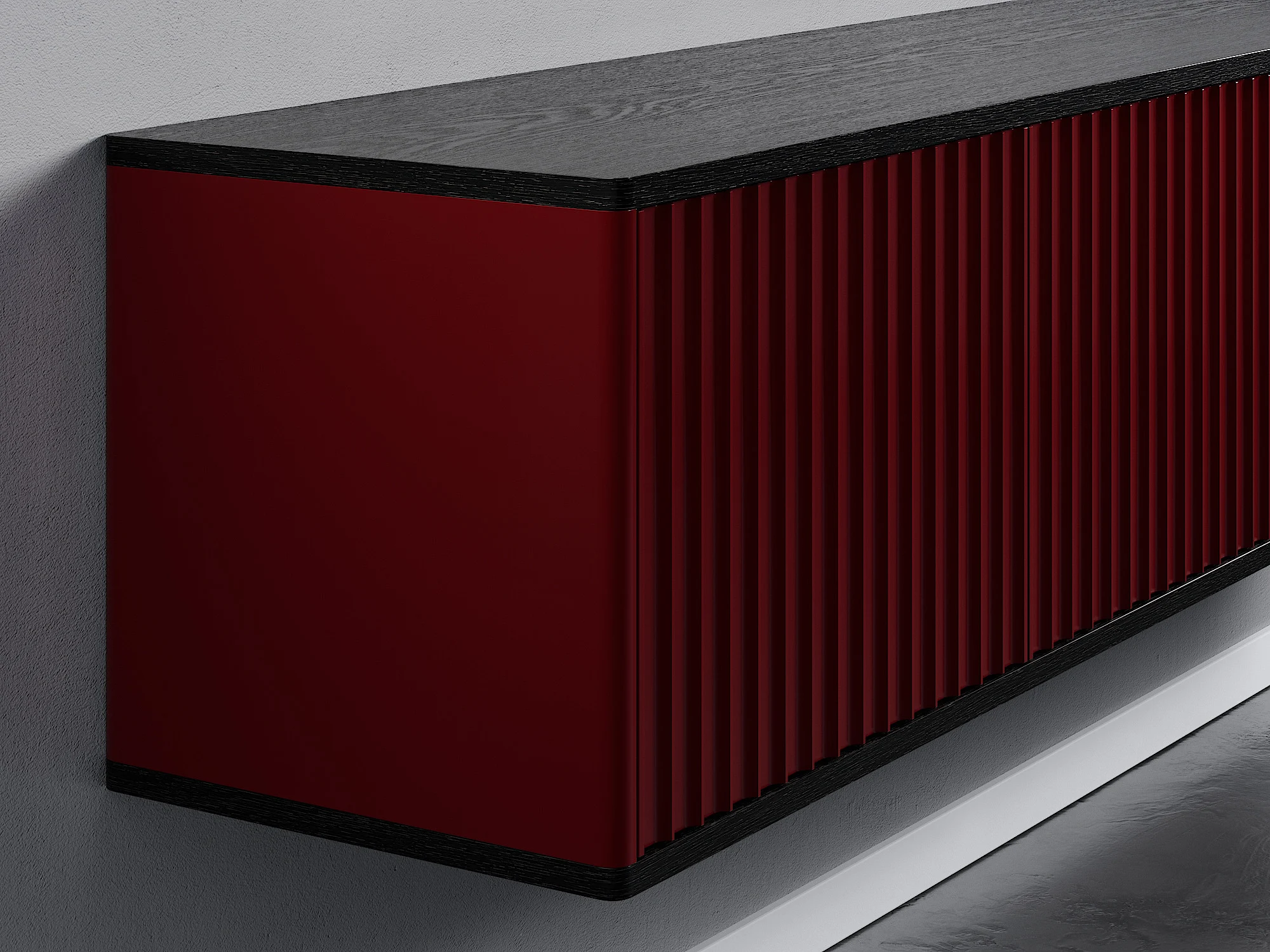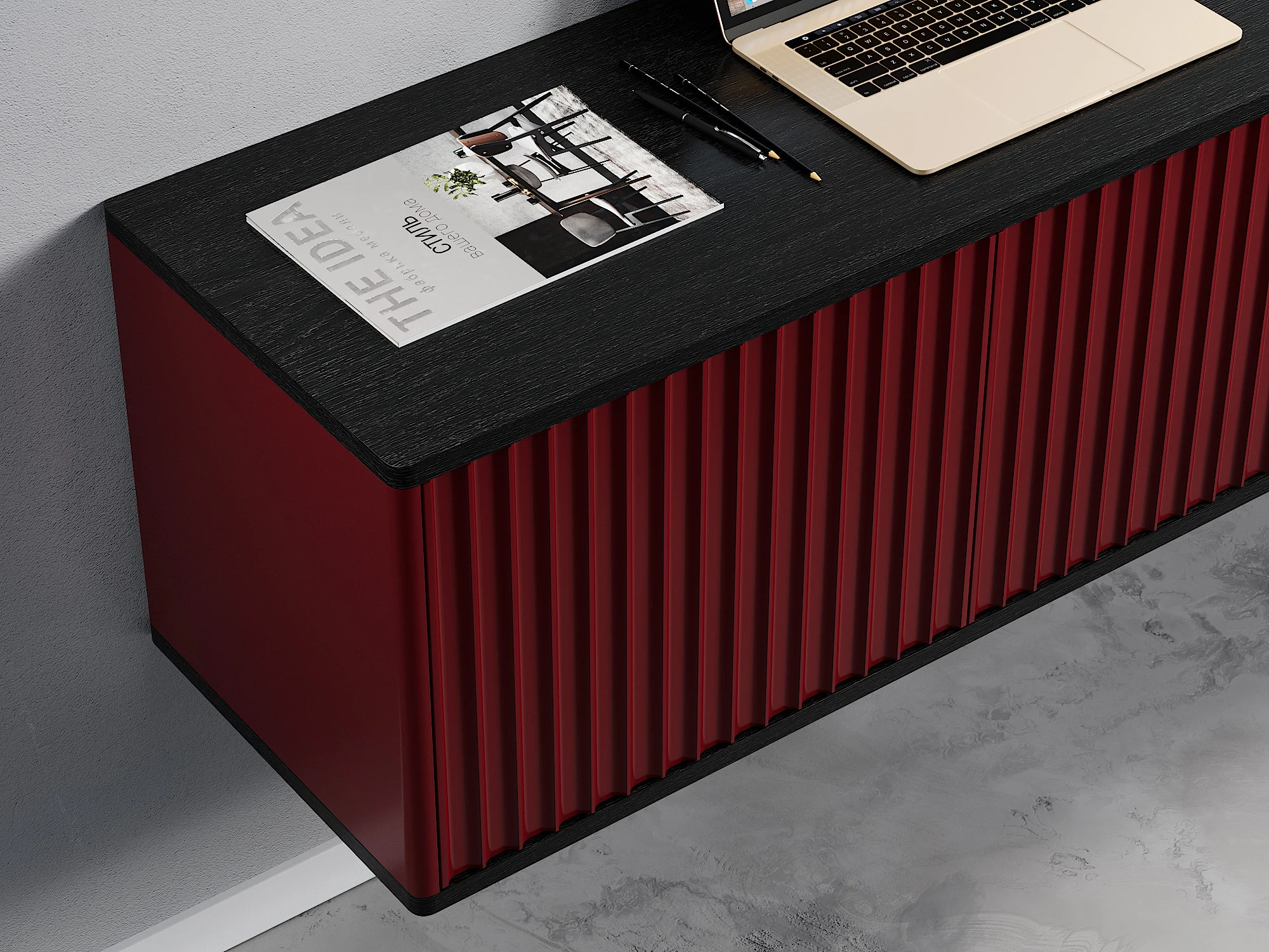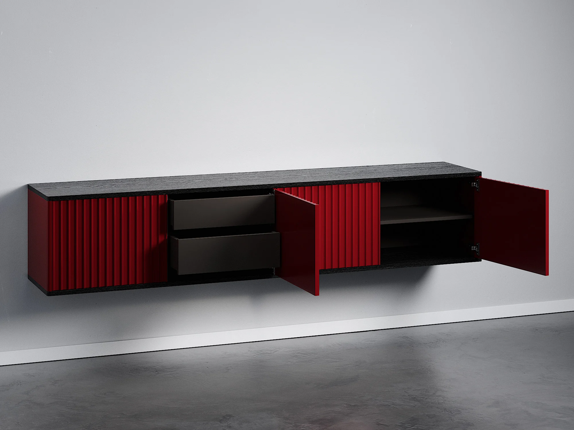 Впечатляющий дизайн подвесной тумбы с полками и ящиками….. не оставит никого равнодушным. Игра теней на фасадах, строгие линии объемного узора и закругленные углы придают изделию особую элегантность и уют. Незаметная граница между дверцами обеспечивается аккуратными примыканиями деталей с минимальным зазором. Дверцы тумбы открываются от легкого нажатия на фасады. Ход направляющих ящиков мягкий и бесшумный. Крепеж к стене для подвесных изделий не предусмотрен в стандартной комплектации, поскольку каждый тип перегородок требует своего специфического крепежа.
