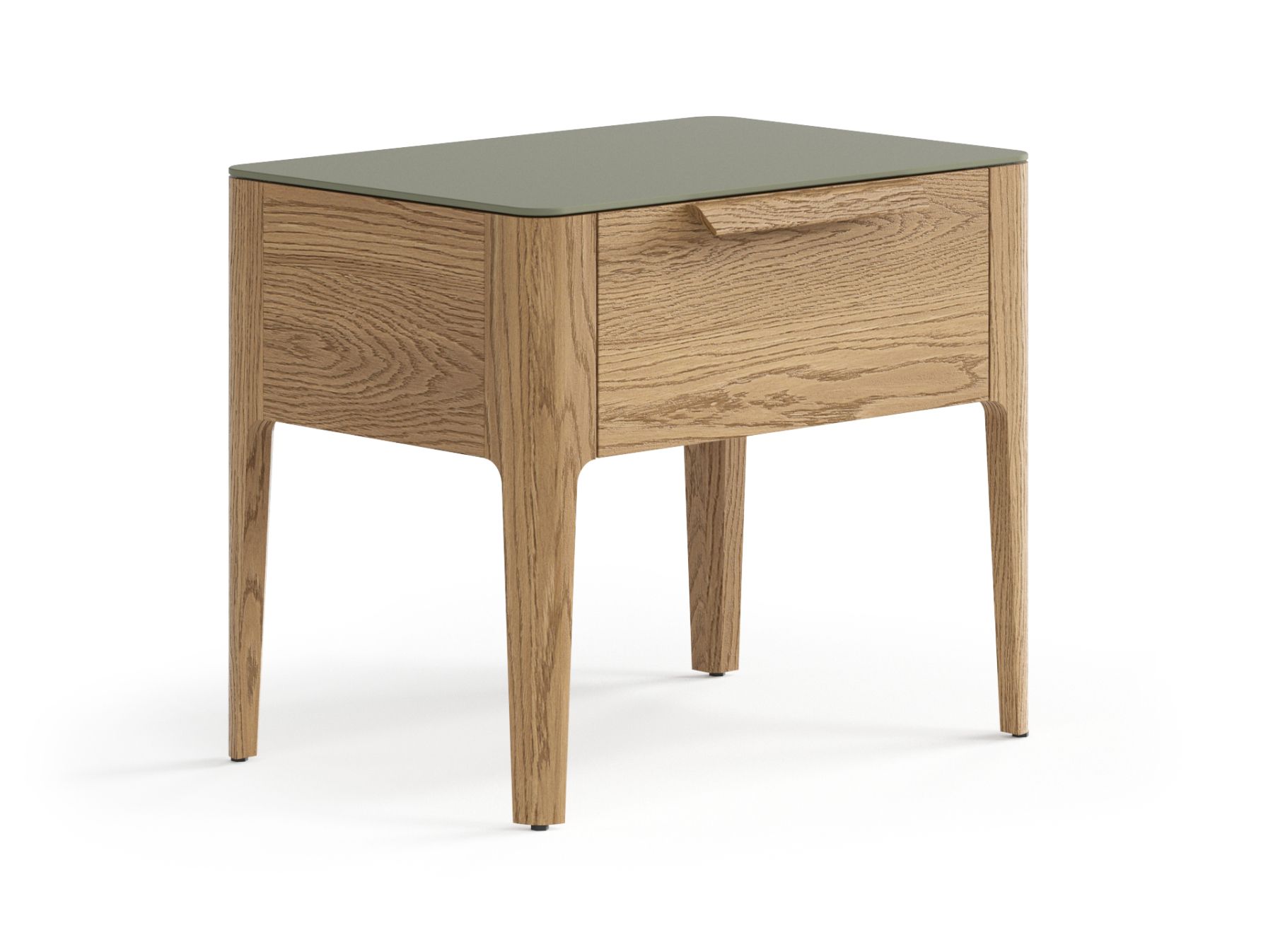 Стильная тумба с одним выдвижным ящиком гармонично впишется в интерьер спальни. Древесные в цвет корпуса опоры из массива лаконичны и надёжны. Сглаженные формы приятны на вид и на ощупь, придают изделию индивидуальность и спокойствие. Аккуратная ручка в форме крыла создана специально для удобного захвата, а механизм продуман до мелочей — тихий и плавный, он делает ежедневное пользование изделием максимально комфортным.