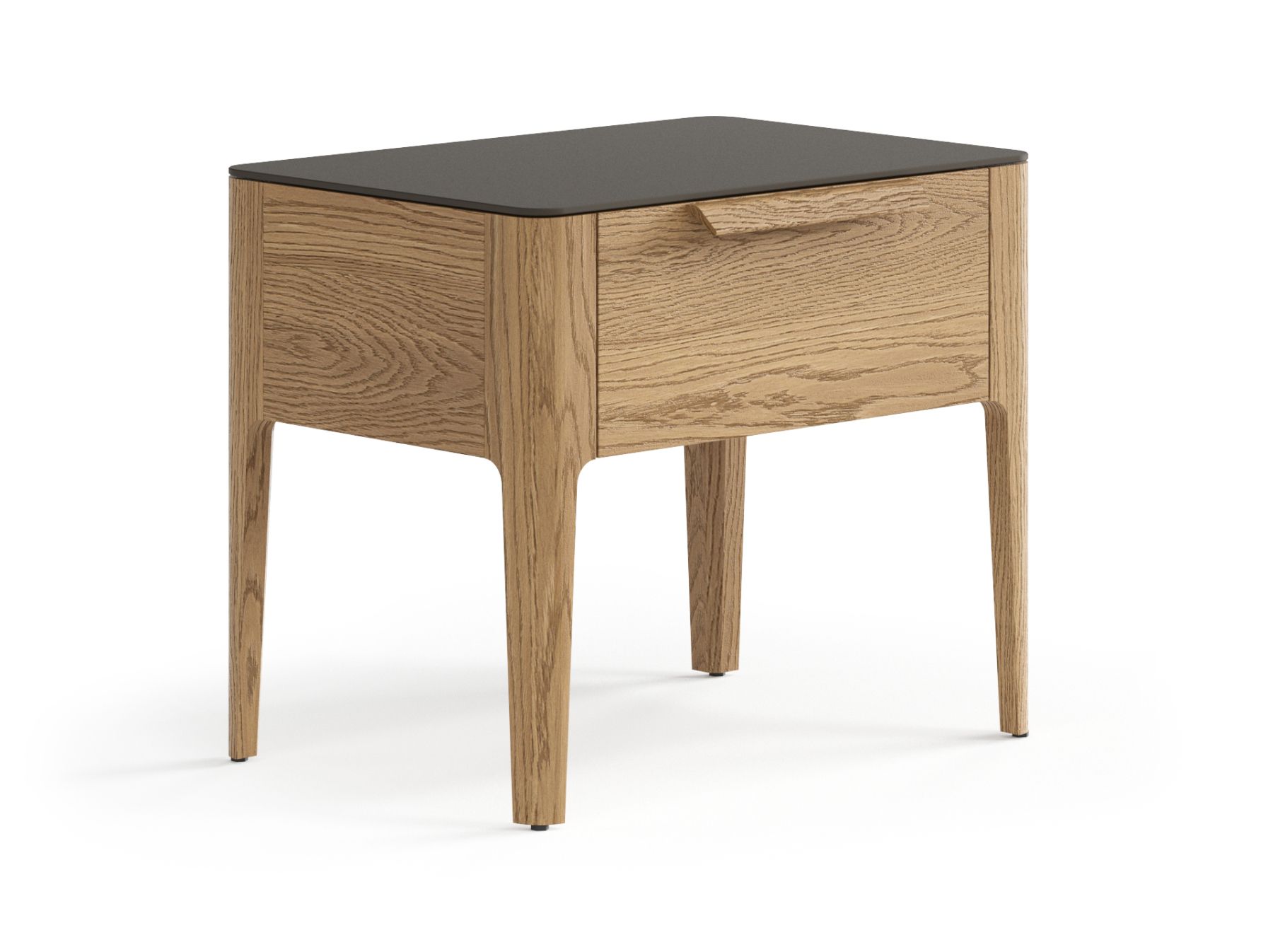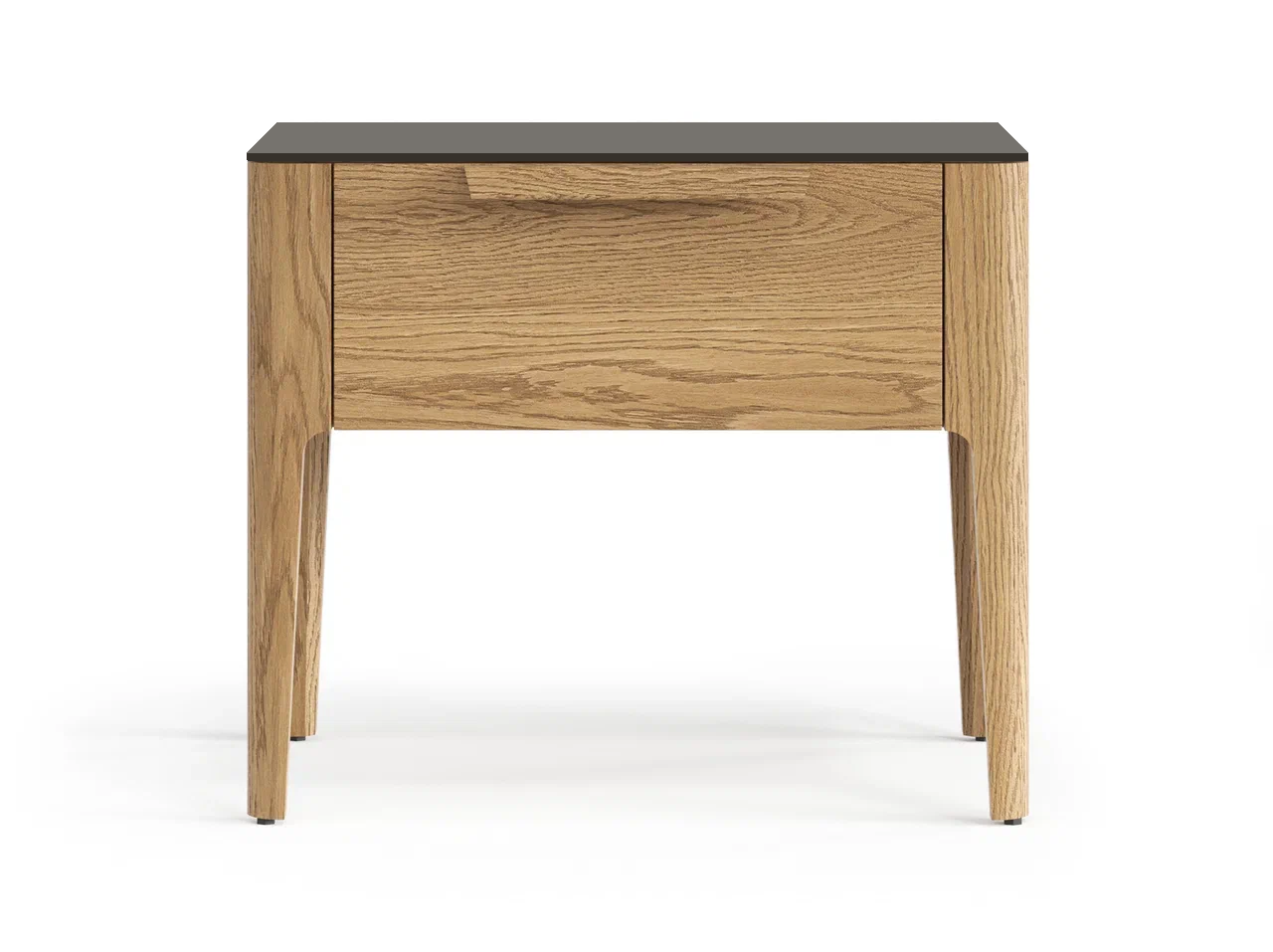 Стильная тумба с одним выдвижным ящиком гармонично впишется в интерьер спальни. Древесные в цвет корпуса опоры из массива лаконичны и надёжны. Сглаженные формы приятны на вид и на ощупь, придают изделию индивидуальность и спокойствие. Аккуратная ручка в форме крыла создана специально для удобного захвата, а механизм продуман до мелочей — тихий и плавный, он делает ежедневное пользование изделием максимально комфортным.