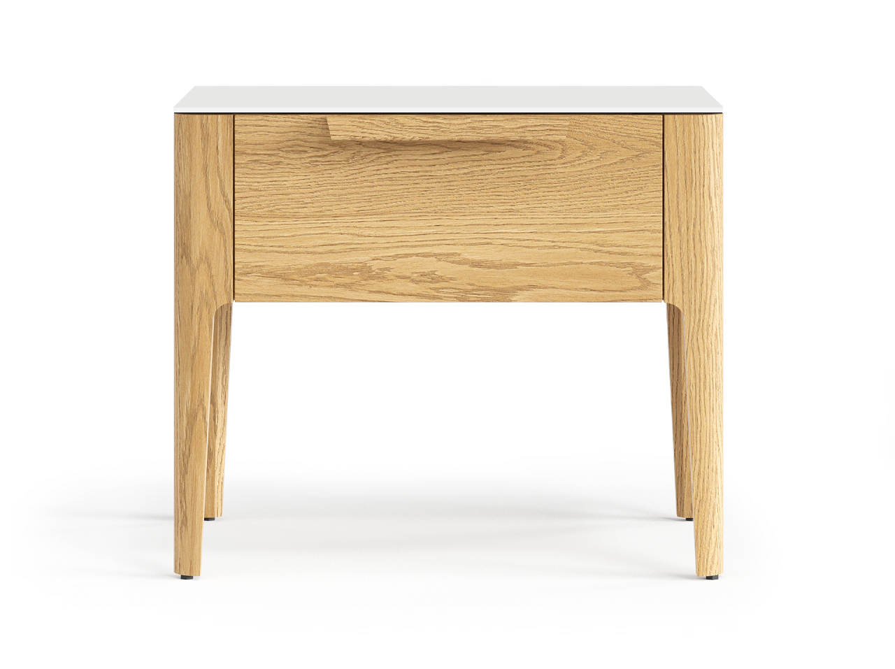 Стильная тумба с одним выдвижным ящиком гармонично впишется в интерьер спальни. Древесные в цвет корпуса опоры из массива лаконичны и надёжны. Сглаженные формы приятны на вид и на ощупь, придают изделию индивидуальность и спокойствие. Аккуратная ручка в форме крыла создана специально для удобного захвата, а механизм продуман до мелочей — тихий и плавный, он делает ежедневное пользование изделием максимально комфортным.