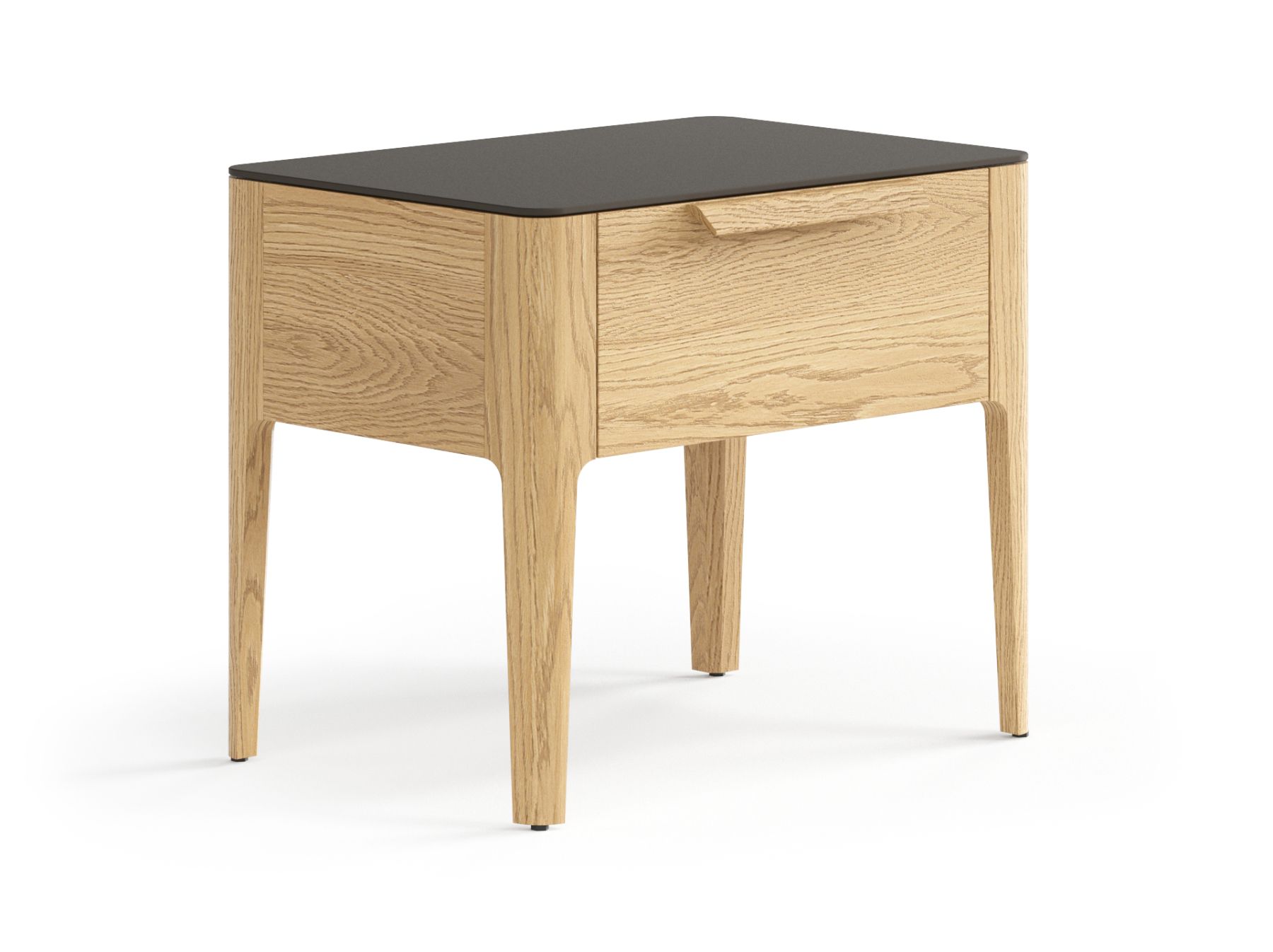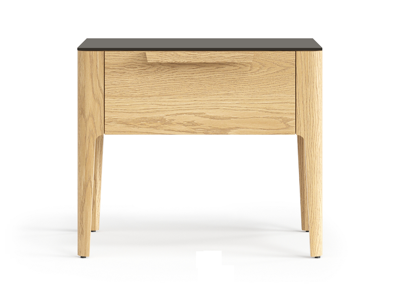 Стильная тумба с одним выдвижным ящиком гармонично впишется в интерьер спальни. Древесные в цвет корпуса опоры из массива лаконичны и надёжны. Сглаженные формы приятны на вид и на ощупь, придают изделию индивидуальность и спокойствие. Аккуратная ручка в форме крыла создана специально для удобного захвата, а механизм продуман до мелочей — тихий и плавный, он делает ежедневное пользование изделием максимально комфортным.