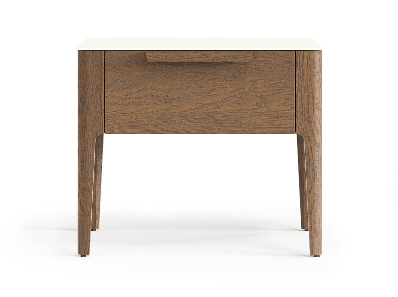 Стильная тумба с одним выдвижным ящиком гармонично впишется в интерьер спальни. Древесные в цвет корпуса опоры из массива лаконичны и надёжны. Сглаженные формы приятны на вид и на ощупь, придают изделию индивидуальность и спокойствие. Аккуратная ручка в форме крыла создана специально для удобного захвата, а механизм продуман до мелочей — тихий и плавный, он делает ежедневное пользование изделием максимально комфортным.
