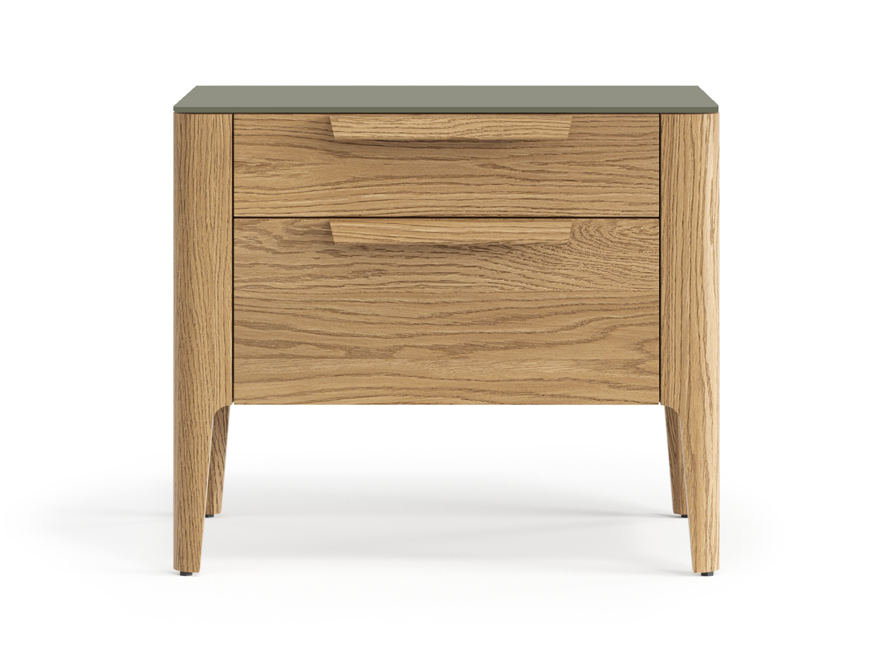 Два выдвижных ящика прикроватной тумбы позволяют вместить все необходимые вещи, которые нужны под рукой в важные утренние и вечерние минуты. Направляющие ящиков скрыты от глаз — ничто не отвлекает внимания от эстетики дизайнерского изделия, а встроенный в механизм доводчик делает пользование тумбой тихим и комфортным.