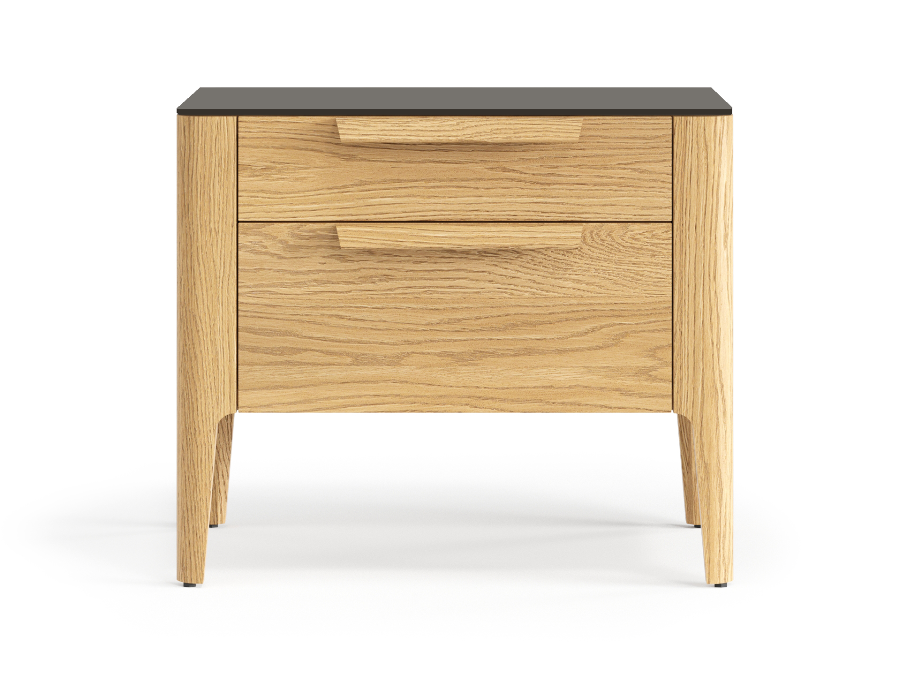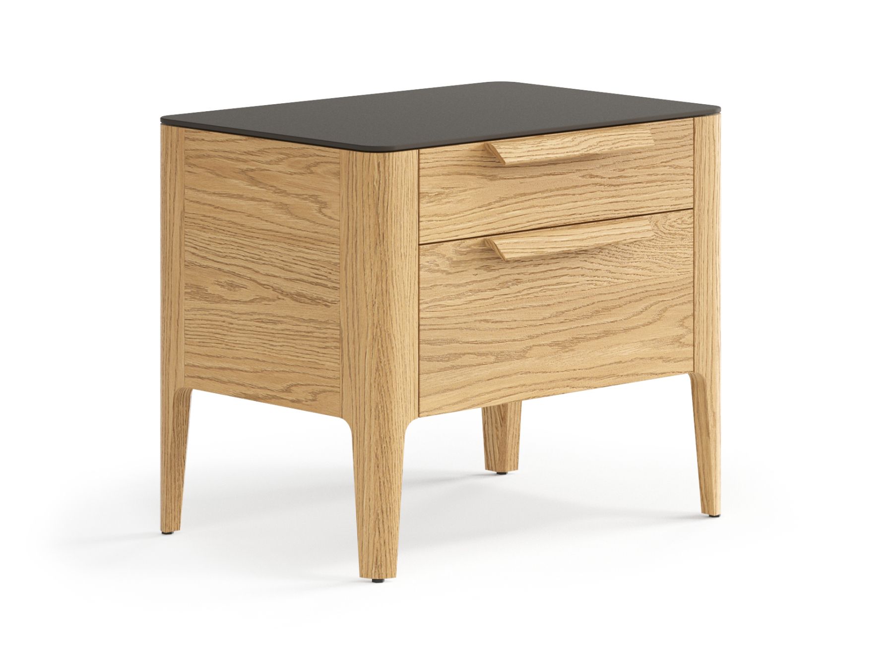 Два выдвижных ящика прикроватной тумбы позволяют вместить все необходимые вещи, которые нужны под рукой в важные утренние и вечерние минуты. Направляющие ящиков скрыты от глаз — ничто не отвлекает внимания от эстетики дизайнерского изделия, а встроенный в механизм доводчик делает пользование тумбой тихим и комфортным.