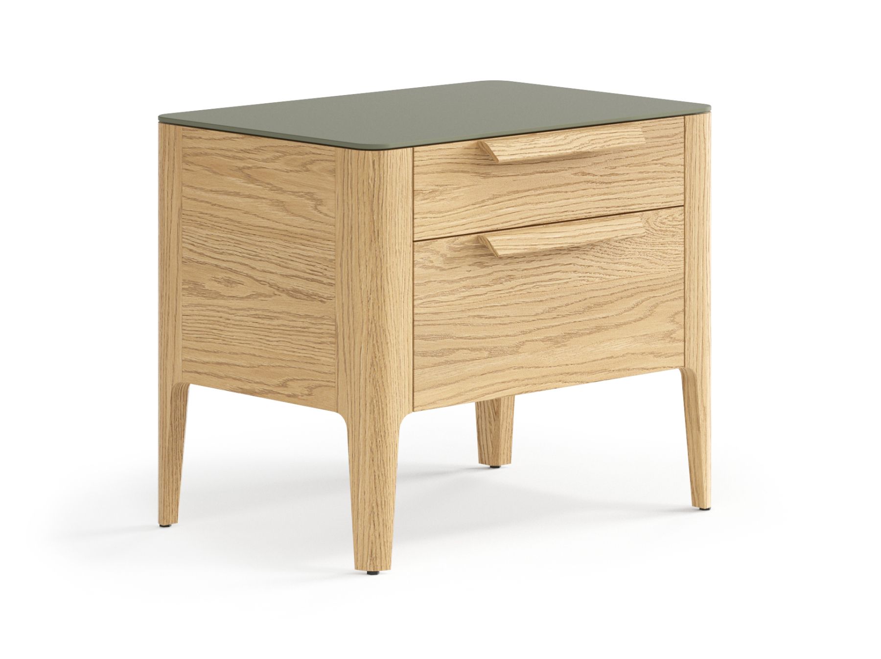 Два выдвижных ящика прикроватной тумбы позволяют вместить все необходимые вещи, которые нужны под рукой в важные утренние и вечерние минуты. Направляющие ящиков скрыты от глаз — ничто не отвлекает внимания от эстетики дизайнерского изделия, а встроенный в механизм доводчик делает пользование тумбой тихим и комфортным.