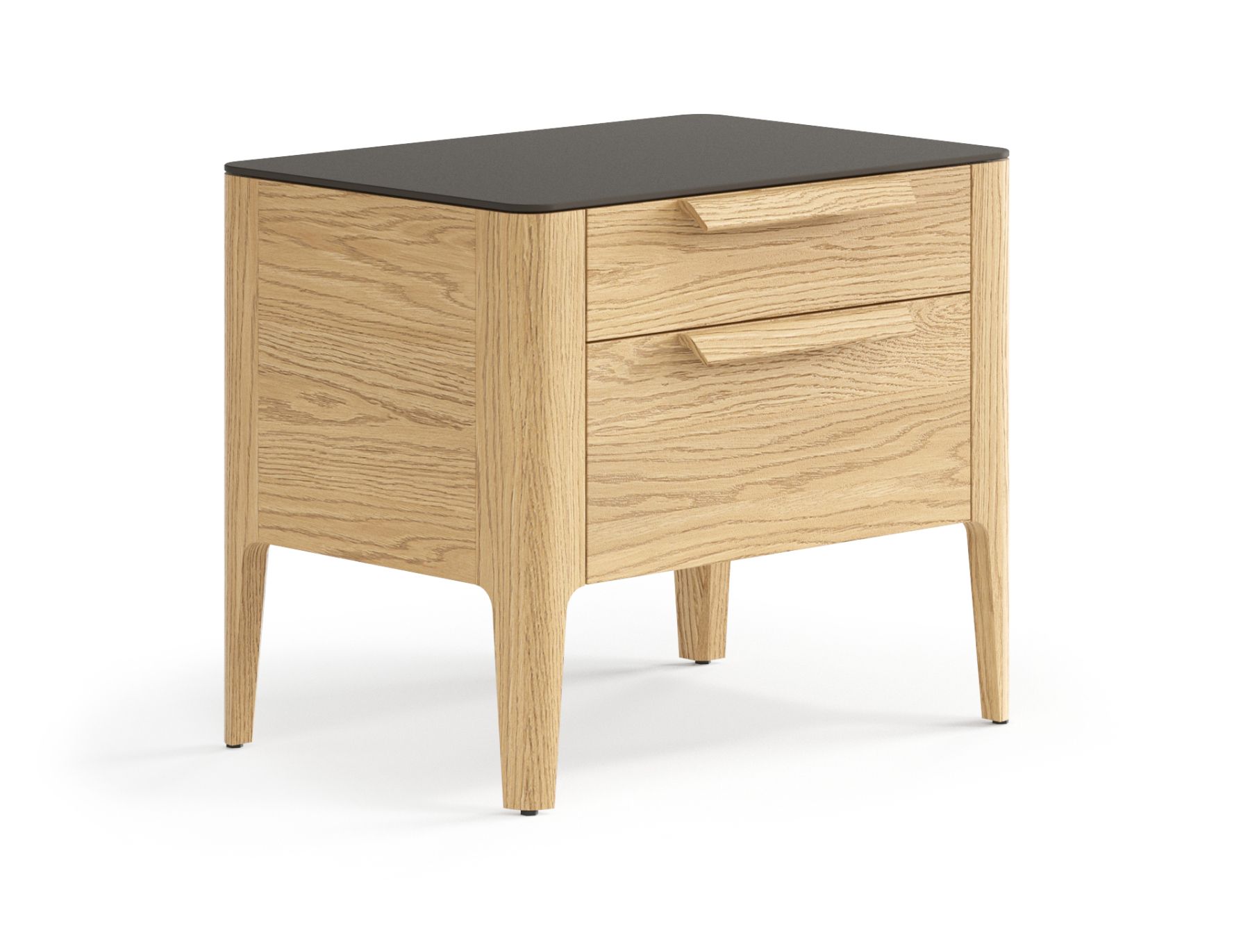 Два выдвижных ящика прикроватной тумбы позволяют вместить все необходимые вещи, которые нужны под рукой в важные утренние и вечерние минуты. Направляющие ящиков скрыты от глаз — ничто не отвлекает внимания от эстетики дизайнерского изделия, а встроенный в механизм доводчик делает пользование тумбой тихим и комфортным.