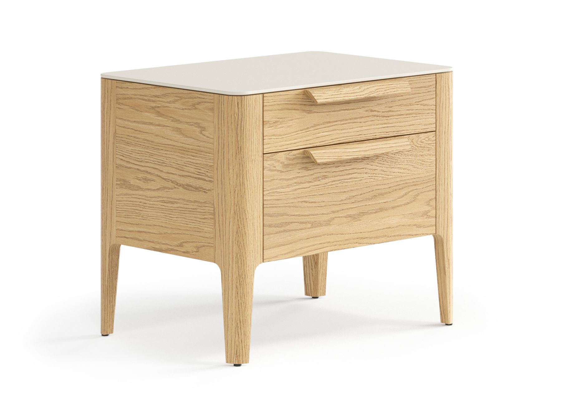 Два выдвижных ящика прикроватной тумбы позволяют вместить все необходимые вещи, которые нужны под рукой в важные утренние и вечерние минуты. Направляющие ящиков скрыты от глаз — ничто не отвлекает внимания от эстетики дизайнерского изделия, а встроенный в механизм доводчик делает пользование тумбой тихим и комфортным.