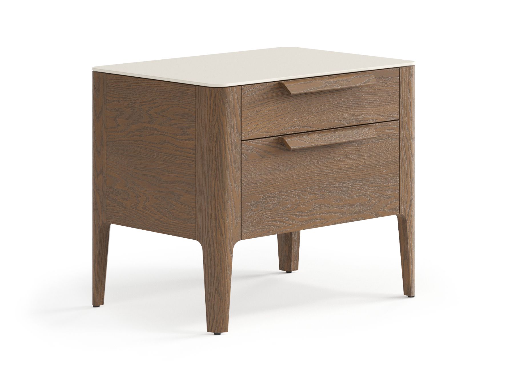 Два выдвижных ящика прикроватной тумбы позволяют вместить все необходимые вещи, которые нужны под рукой в важные утренние и вечерние минуты. Направляющие ящиков скрыты от глаз — ничто не отвлекает внимания от эстетики дизайнерского изделия, а встроенный в механизм доводчик делает пользование тумбой тихим и комфортным.