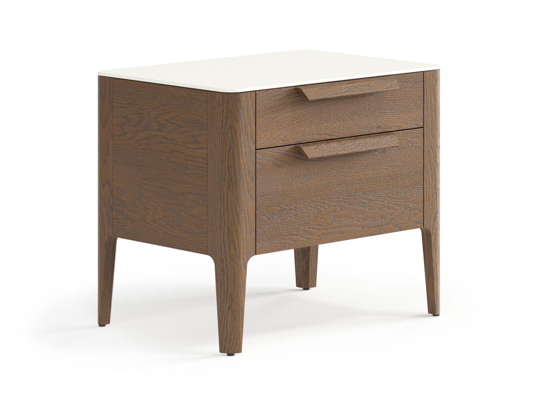 Два выдвижных ящика прикроватной тумбы позволяют вместить все необходимые вещи, которые нужны под рукой в важные утренние и вечерние минуты. Направляющие ящиков скрыты от глаз — ничто не отвлекает внимания от эстетики дизайнерского изделия, а встроенный в механизм доводчик делает пользование тумбой тихим и комфортным.