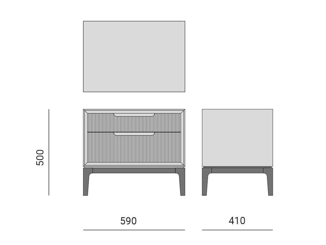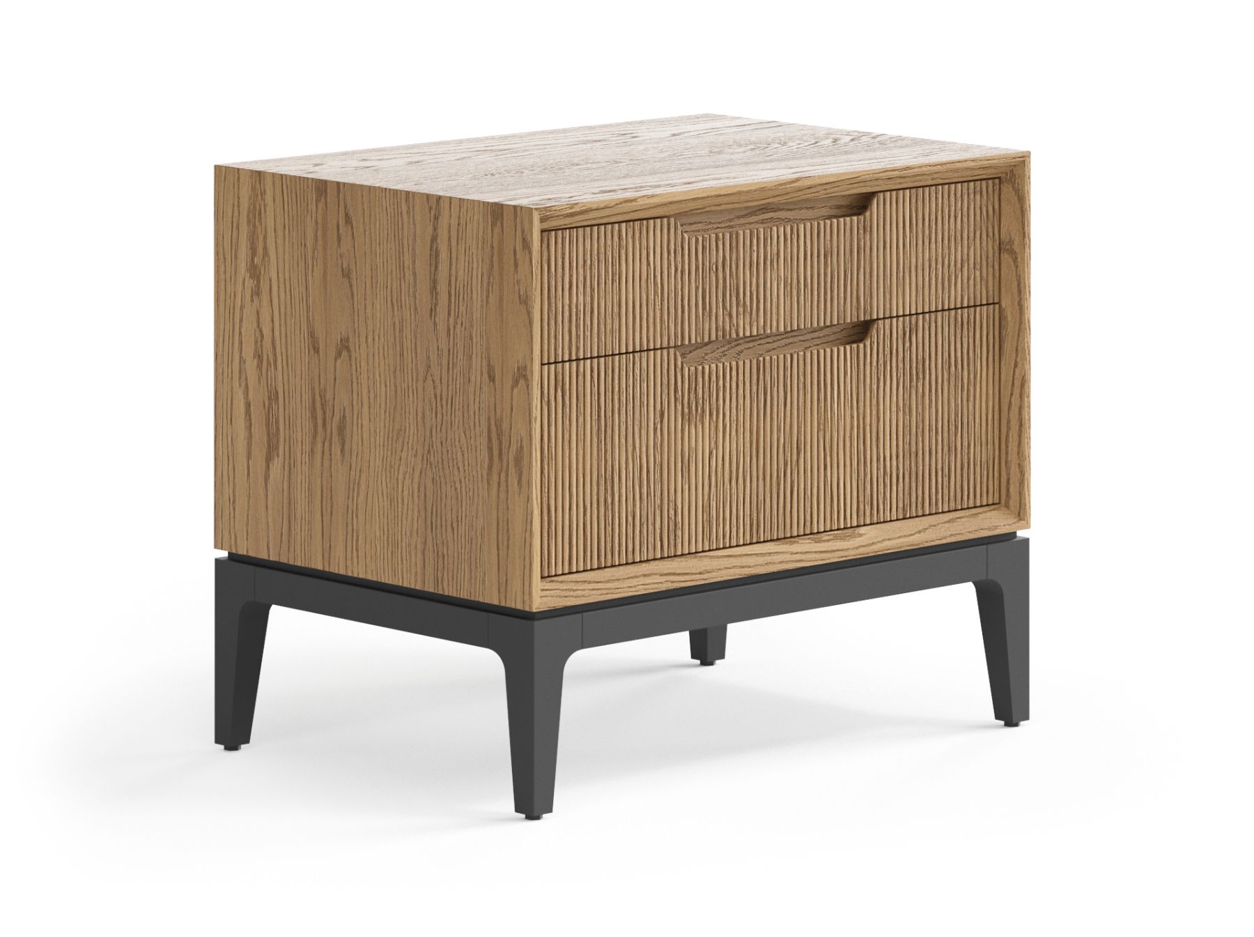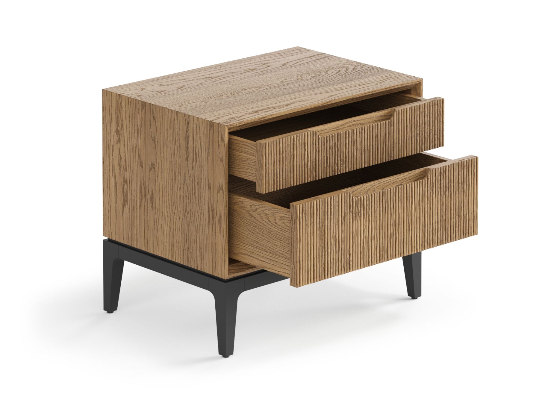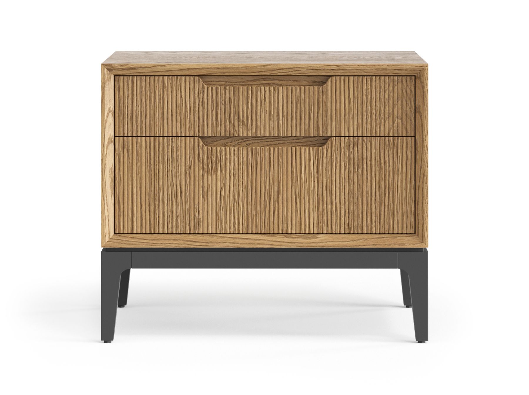 Изделие с использованием массива доступно в пяти древесных оттенках, при этом опоры также могут быть выполнены в чёрном матовом покрытии эмалью.