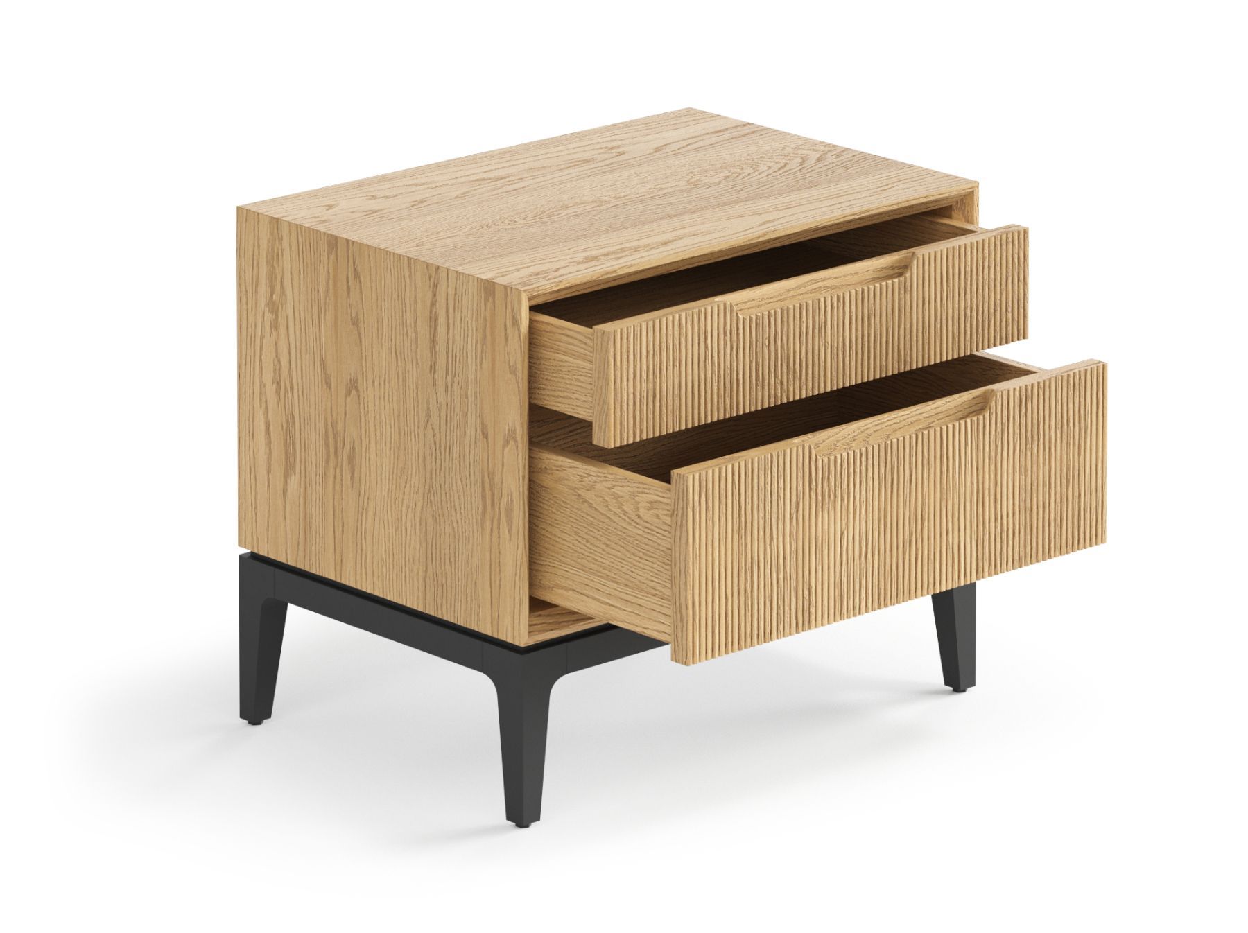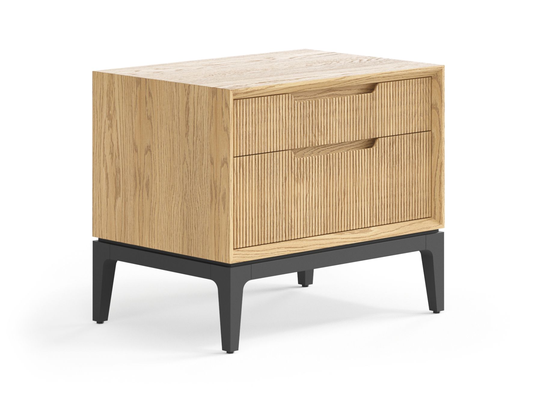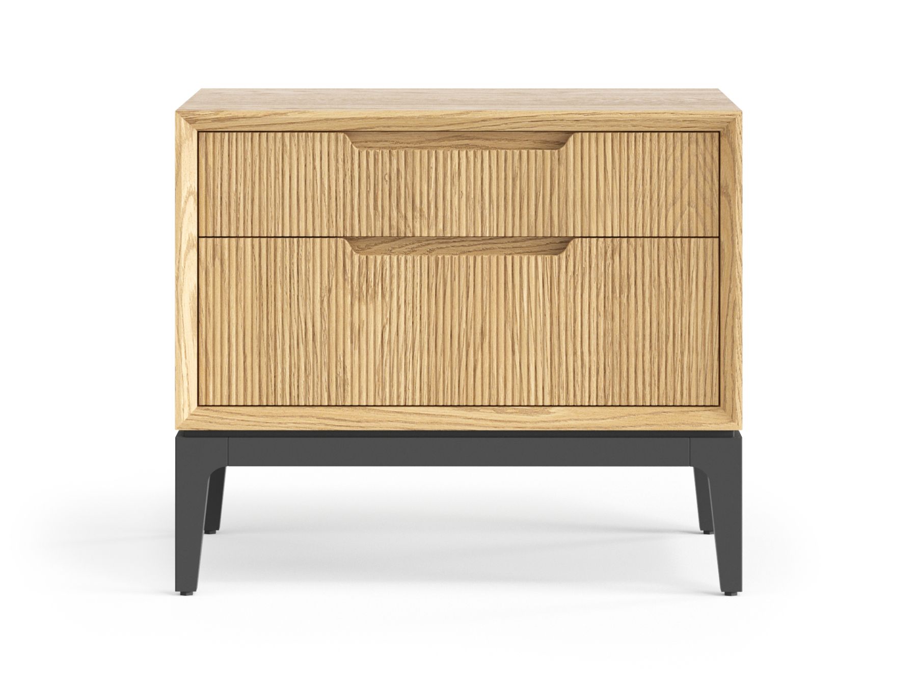 Изделие с использованием массива доступно в пяти древесных оттенках, при этом опоры также могут быть выполнены в чёрном матовом покрытии эмалью.