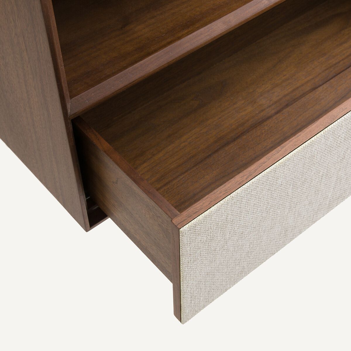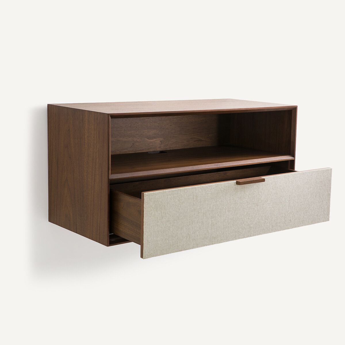 — 1 выдвижной ящик из МДФ, облицованного ореховым шпоном, лицевая сторона обтянута тканью, 91% полиэстер, 9% акрил