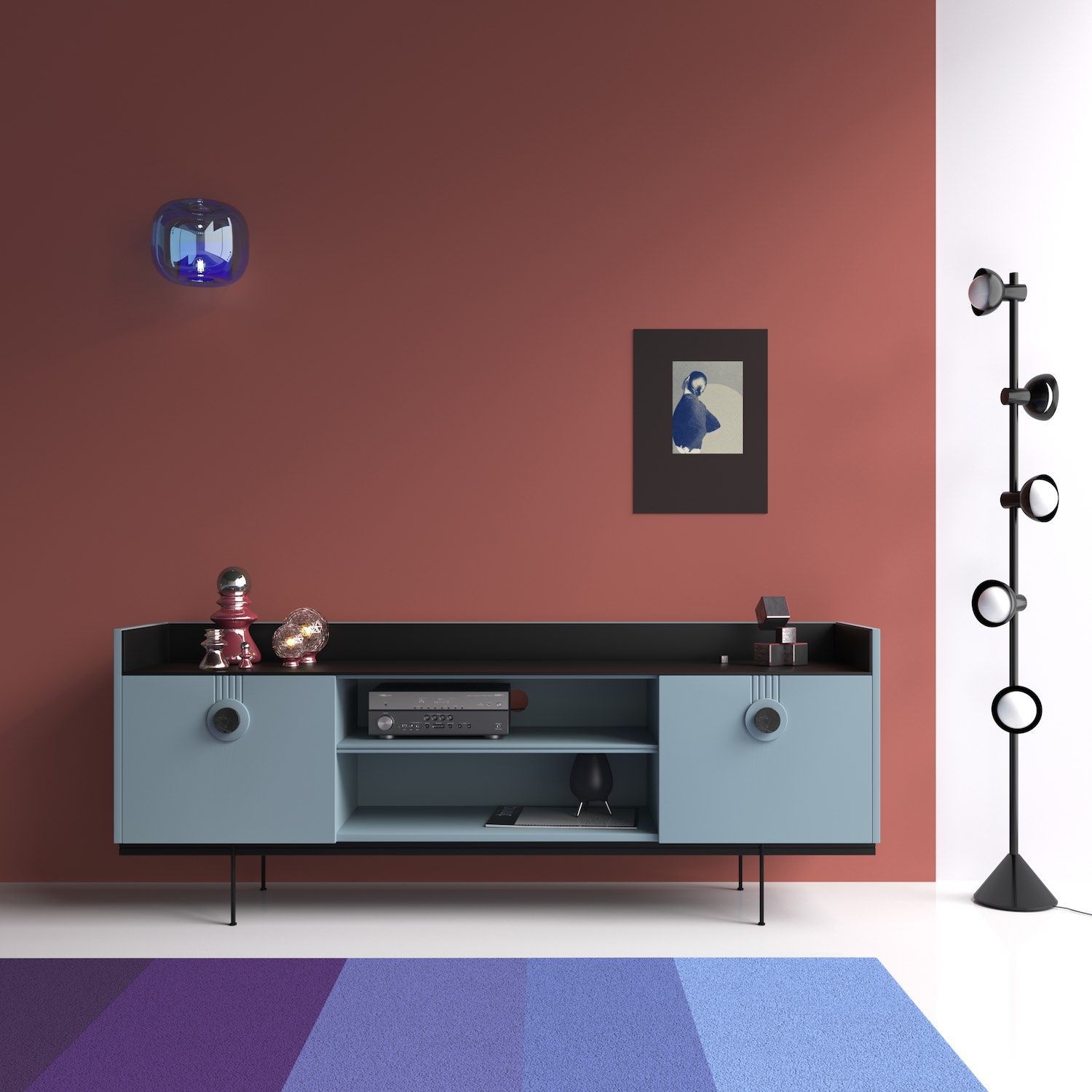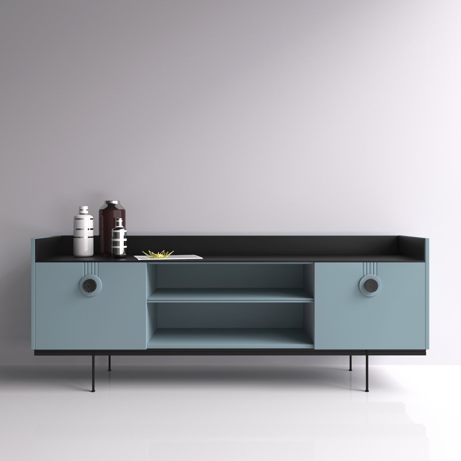 Распашные дверцы тумбы оснащены петлями с доводчиками плавного закрывания корпус, фасады, ниша и полка-эмаль RAL design 230 60 10, столешница и основание-эмаль Ral 9011
