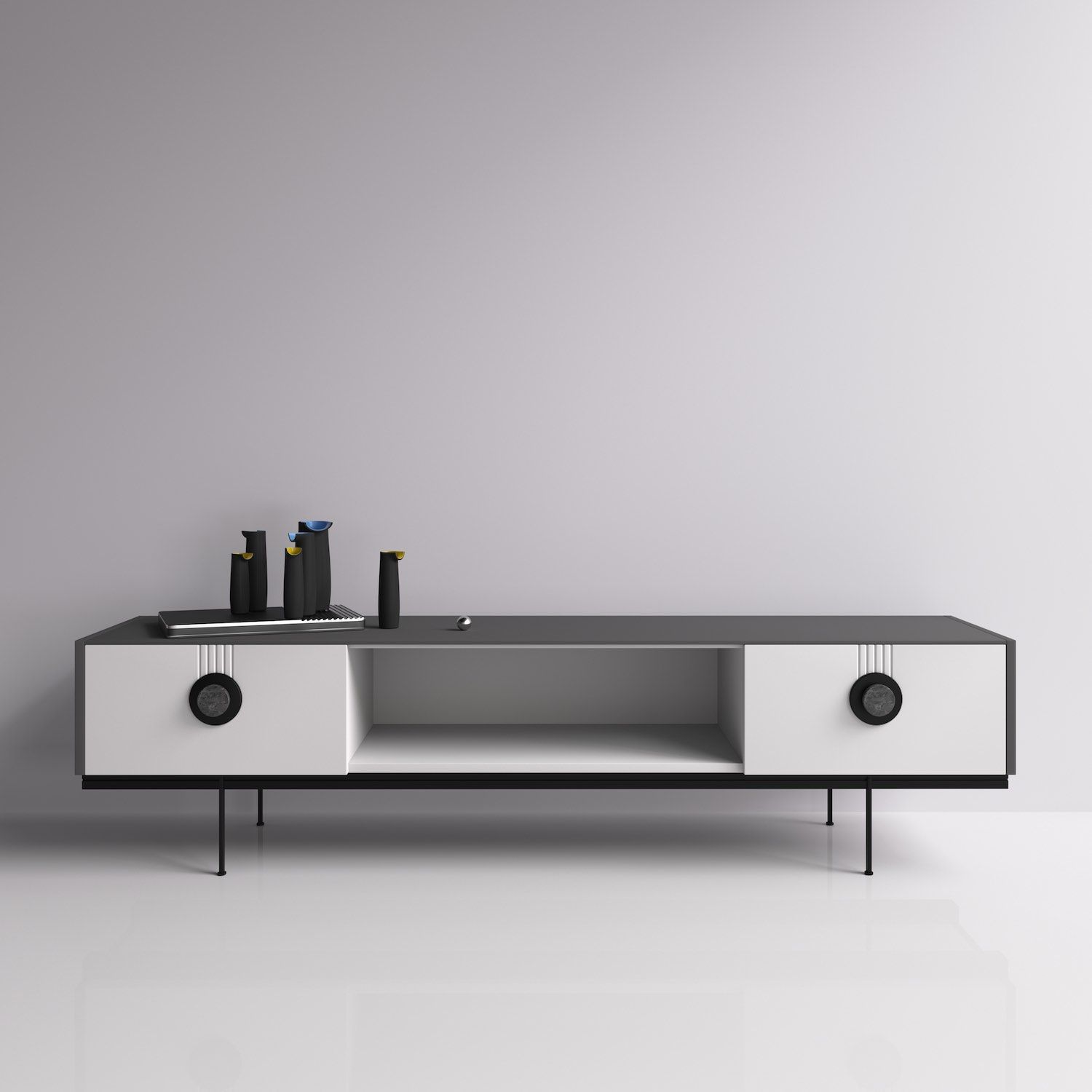 Распашные дверцы тумбы оснащены петлями с доводчиками плавного закрывания корпус -эмаль Ral 7012, фасады и ниша-эмаль Ral 9003. кант ручек и основание-эмаль Ral 9011