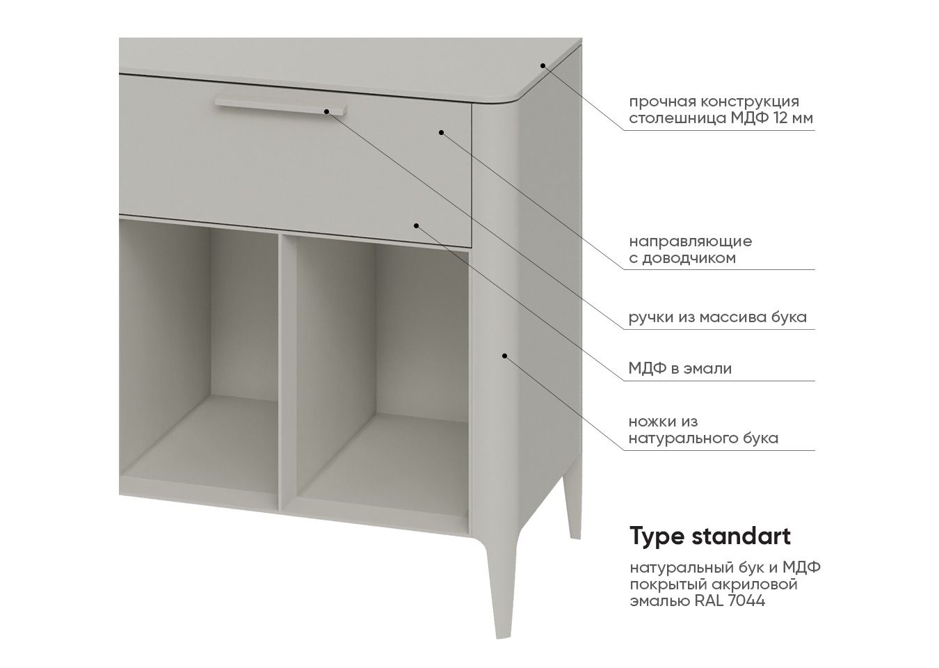 Материал: бук, мдф, внутри лдсп