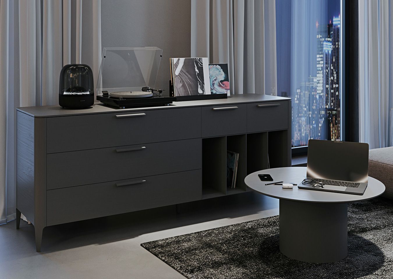 При производстве используется шпон натурального дуба, покрытие эмаль RAL 7043