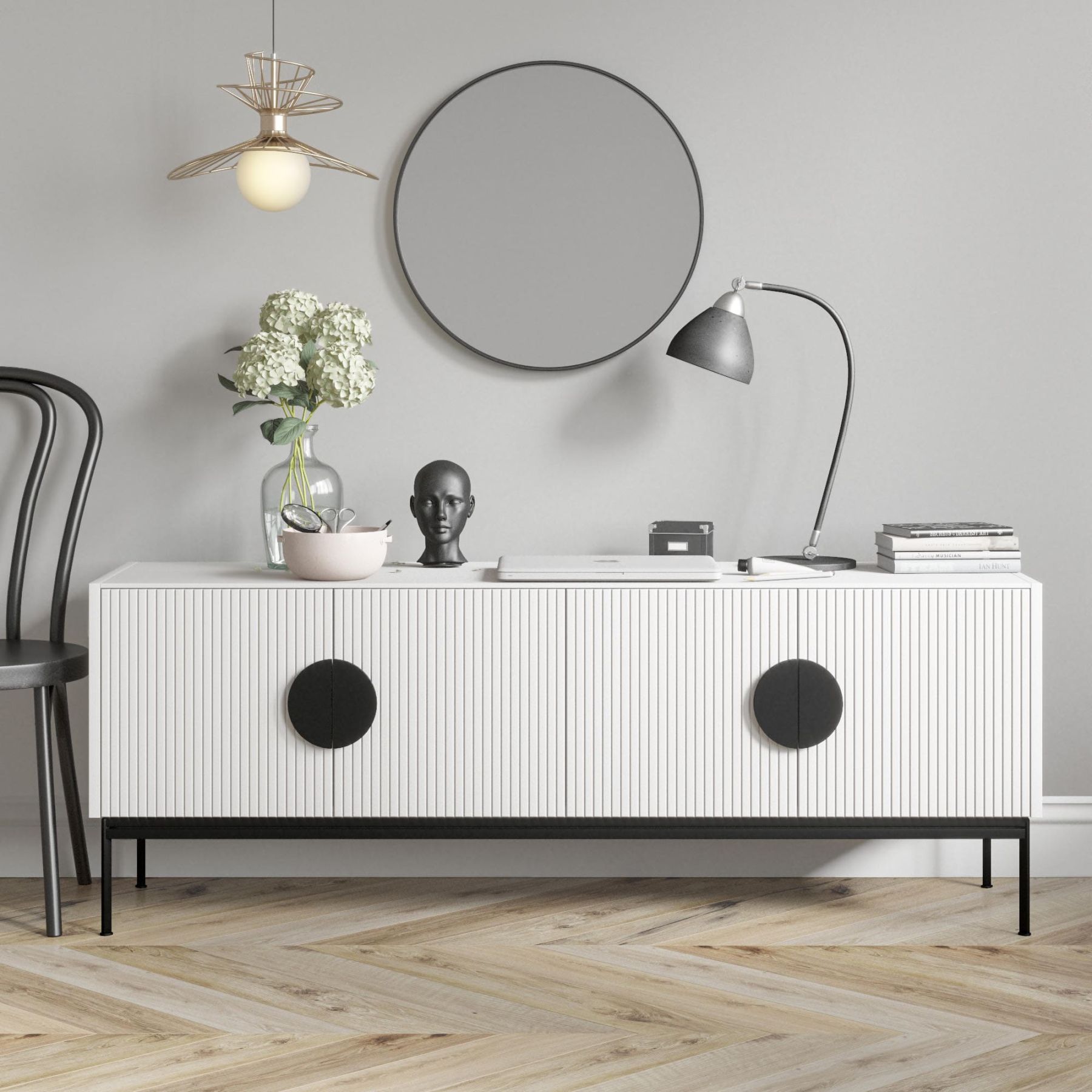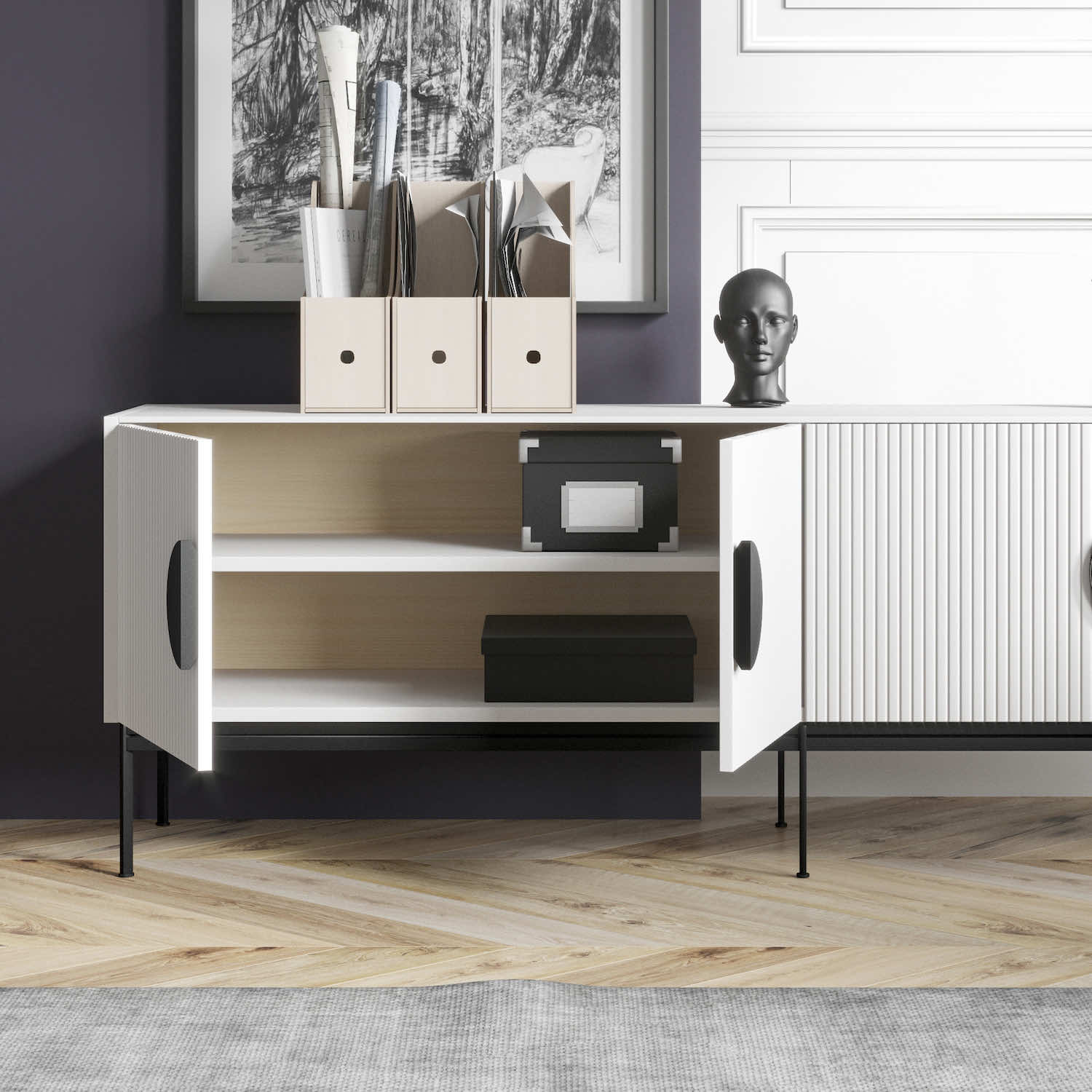 Распашные дверцы тумбы оснащены петлями с доводчиками плавного закрывания Корпус-эмаль белая ral 9016, ножки -черная эмаль, ral 9011
