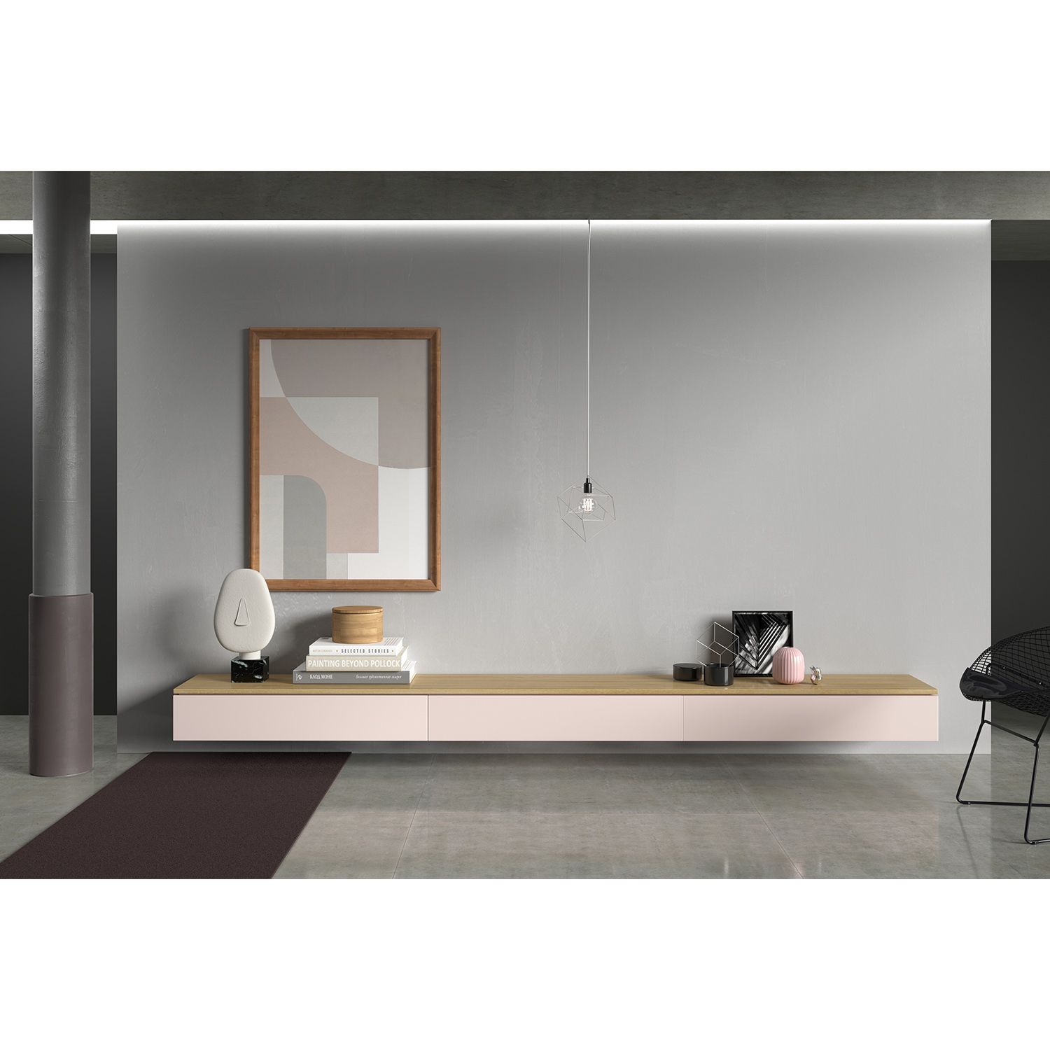 В тумбе 3 секции с выдвижными ящиками – направляющие с доводчиком плавного хода, полного выдвижения. Предусмотрены крепления для монтажа на стену. Можно использовать, поставив на пол. Лак, эмаль серая пандора ral design 040-85-05