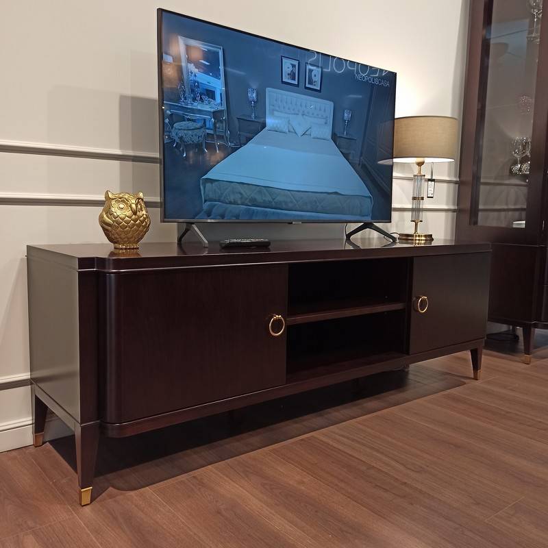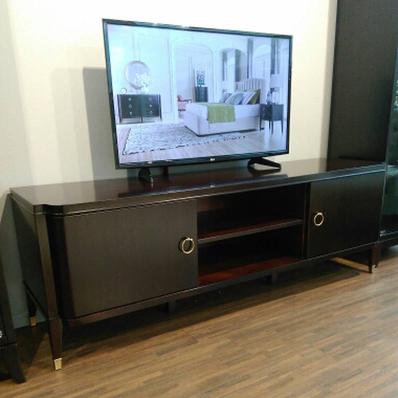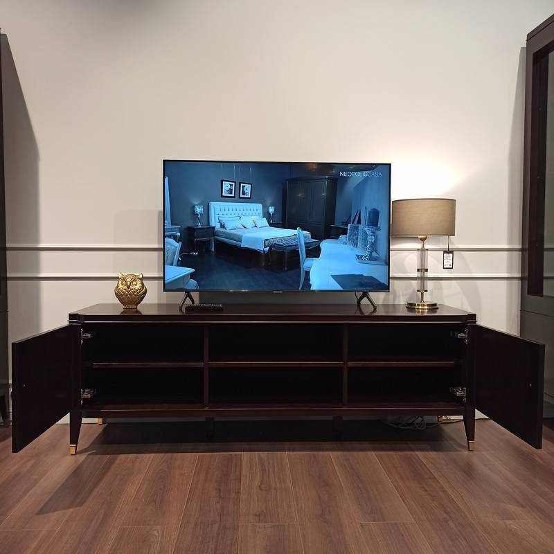 ТВ тумба выполнена в современном стиле. Сделана из высококачественного МДФ высокой плотности и массива дерева.