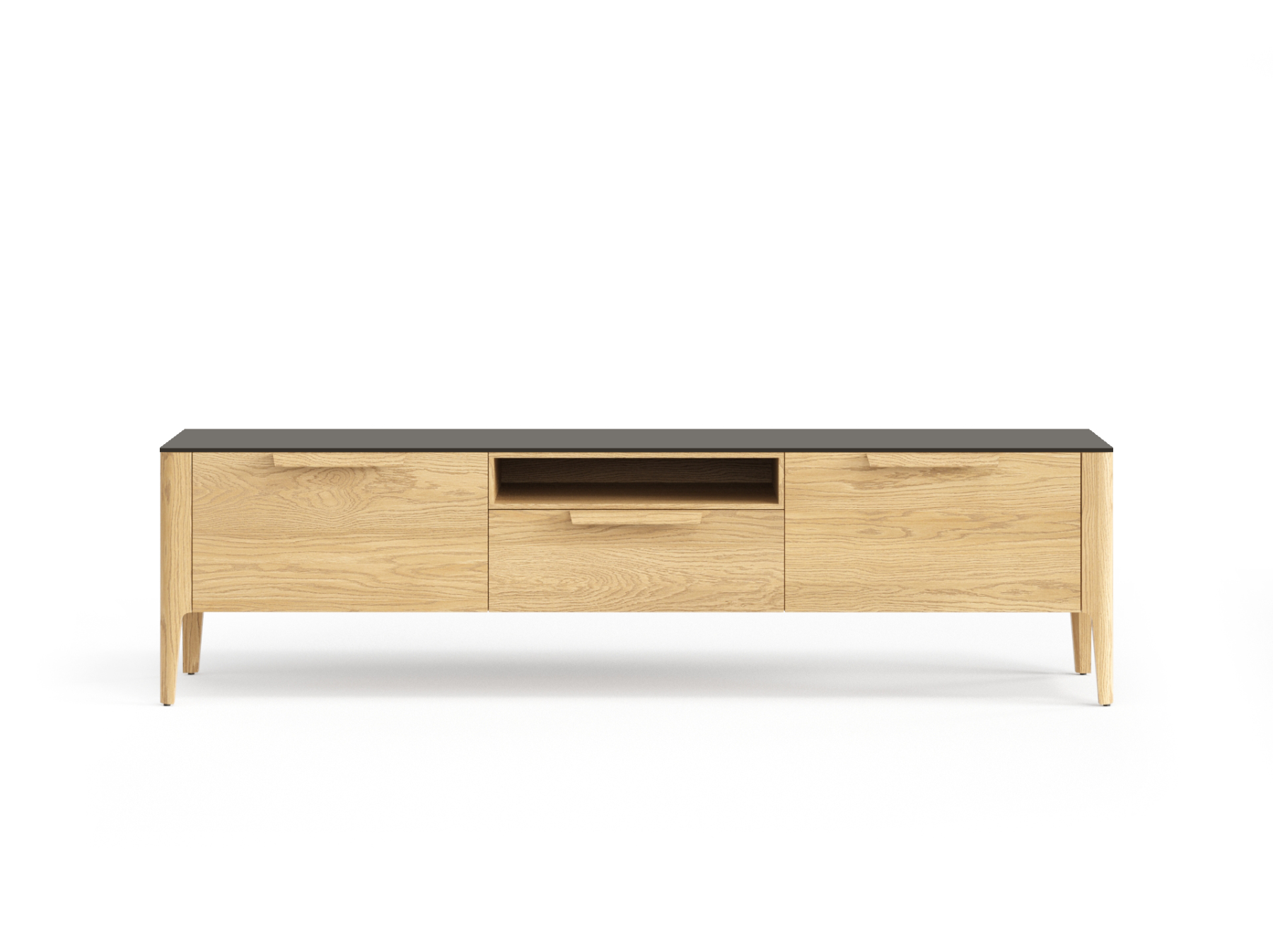Боковые дверцы и центральный выдвижной ящик позволят разместить все необходимые вещи за гладкими фасадами. Ничто не будет отвлекать вас от отдыха и просмотров любимых фильмов.