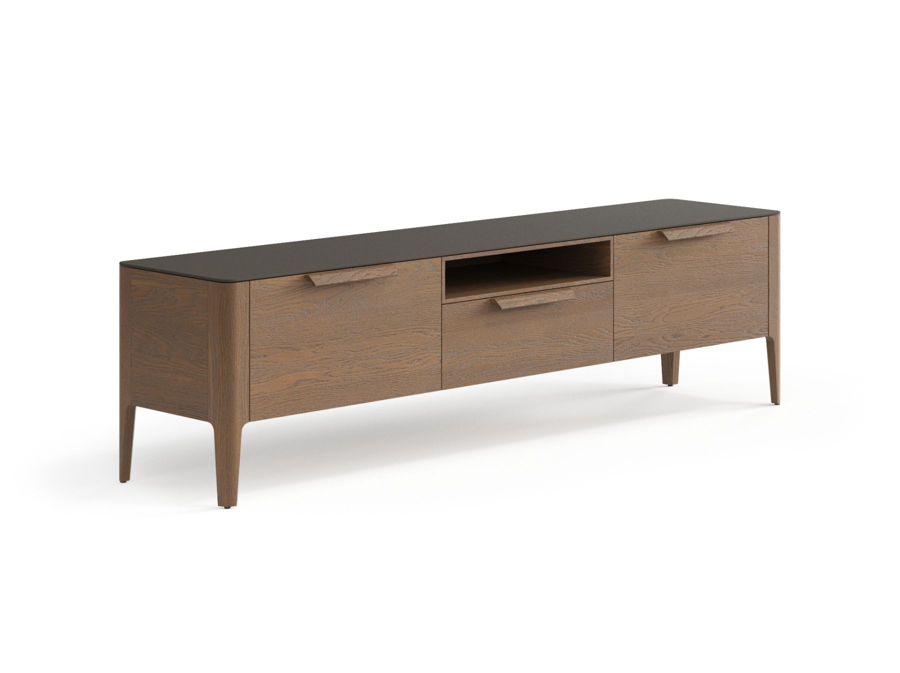 Боковые дверцы и центральный выдвижной ящик позволят разместить все необходимые вещи за гладкими фасадами. Ничто не будет отвлекать вас от отдыха и просмотров любимых фильмов.