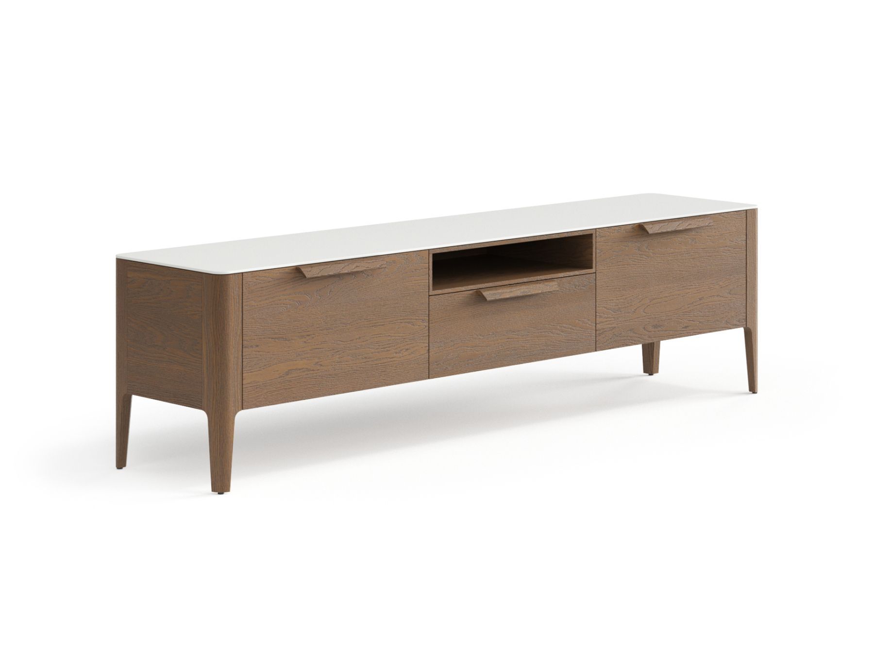 Боковые дверцы и центральный выдвижной ящик позволят разместить все необходимые вещи за гладкими фасадами. Ничто не будет отвлекать вас от отдыха и просмотров любимых фильмов.