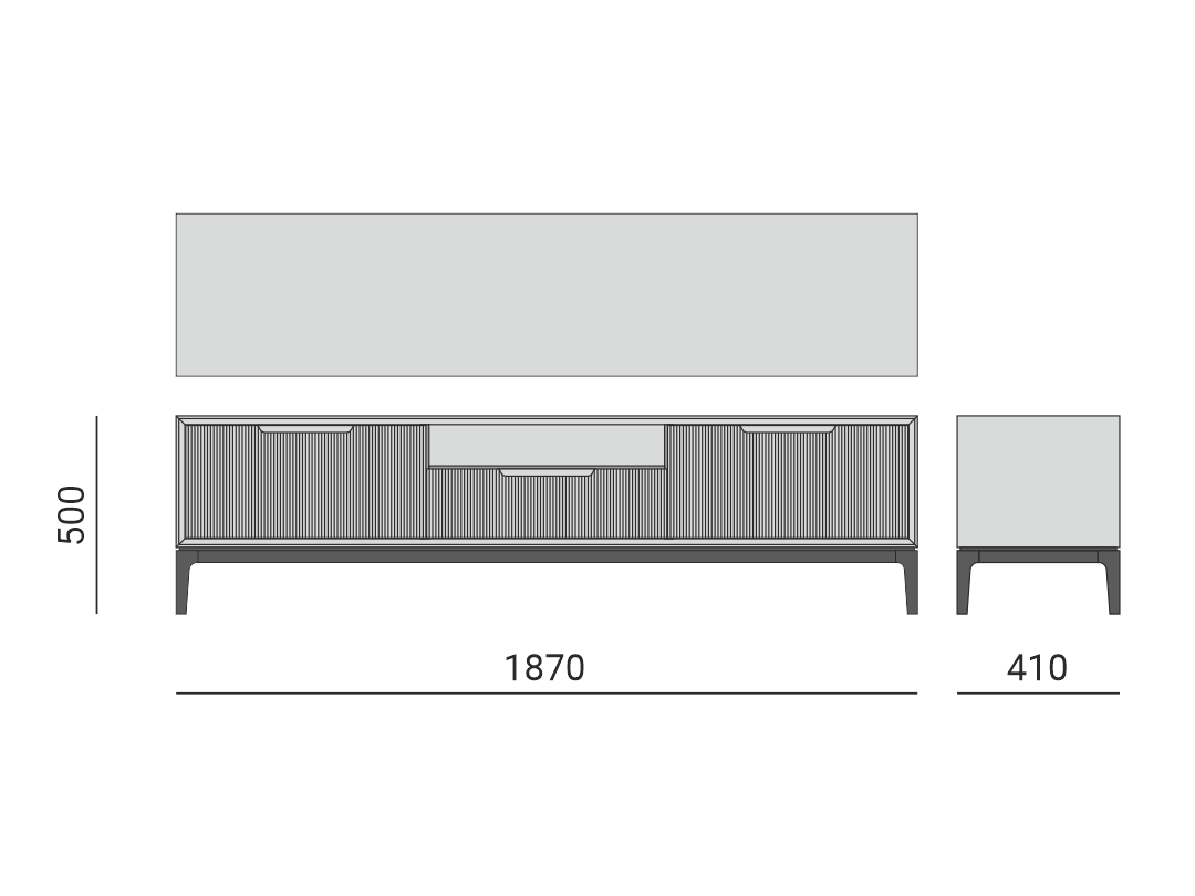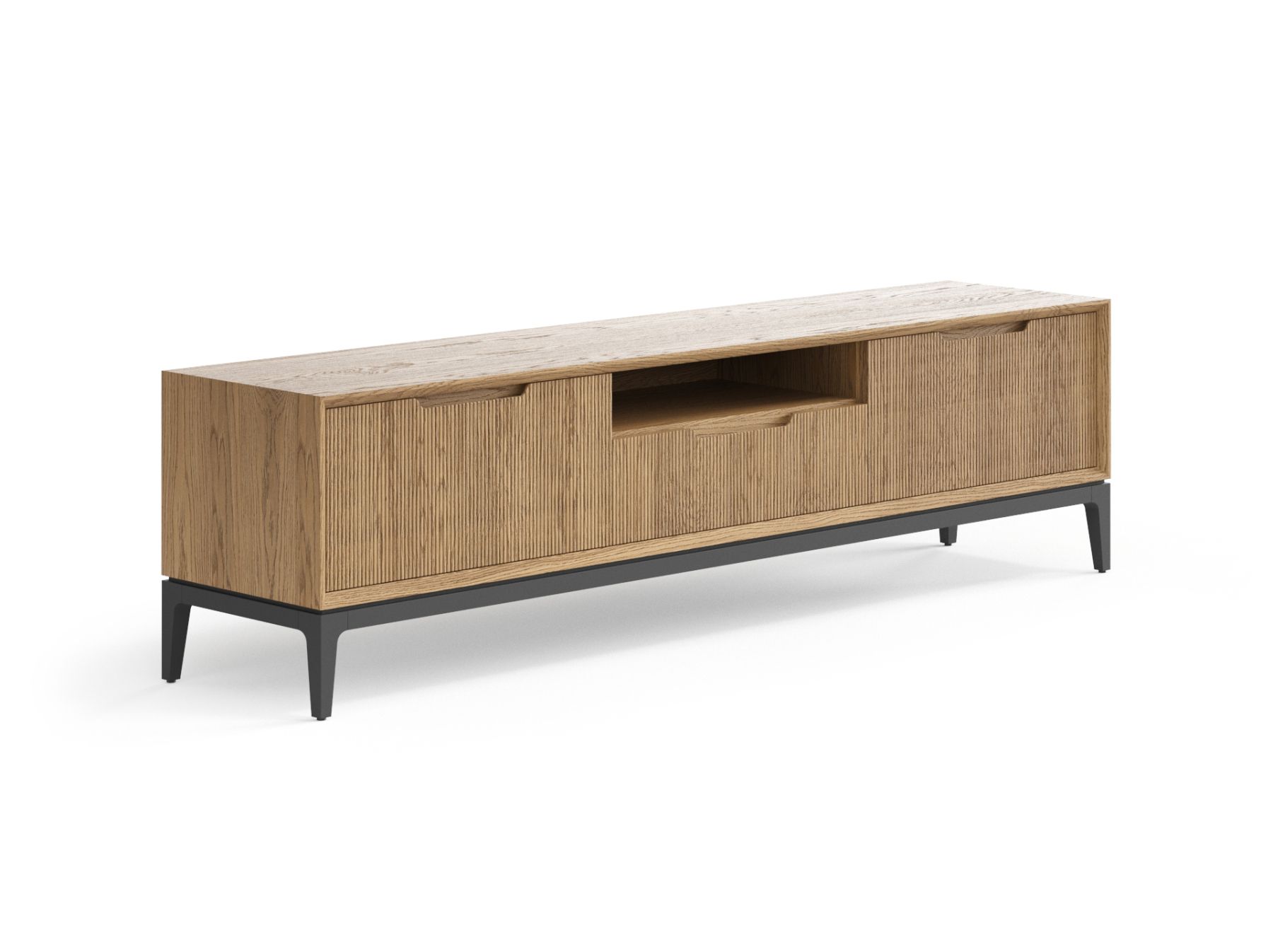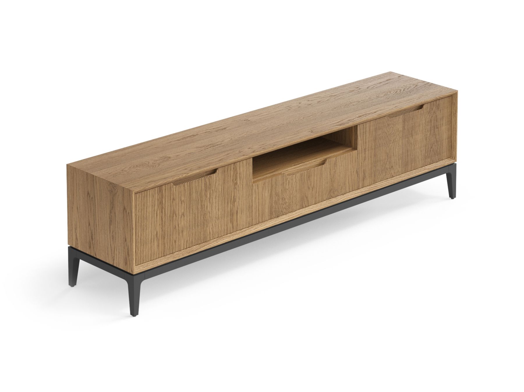 Боковые дверцы и центральный выдвижной ящик позволят разместить все необходимые вещи за фасадами с рельефной фрезеровкой. Ничто не будет отвлекать вас от отдыха и просмотров любимых фильмов.