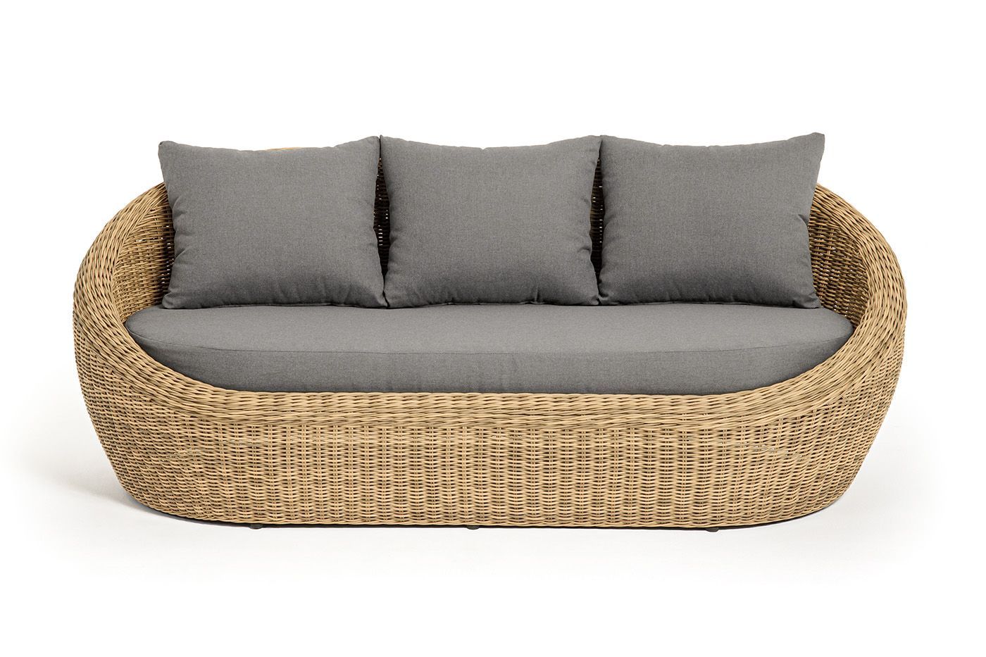 Для оплетки каркаса используется высококачественный искусственный ротанг. Мебель выполнена в соломенном цвете.