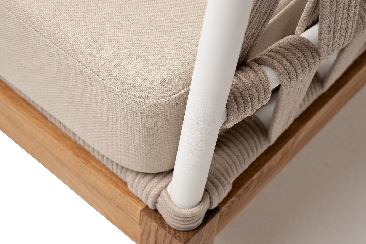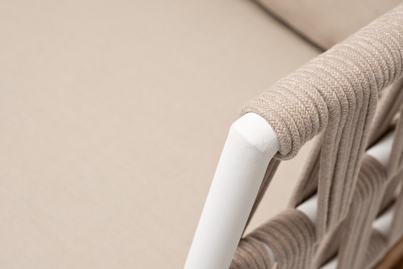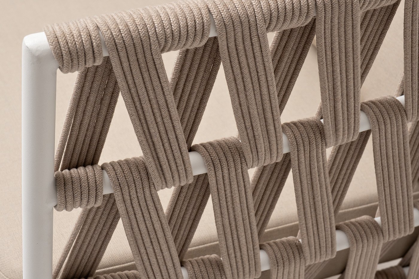 Боковины каркаса вручную оплетены роупом - эластичными синтетическими лентами, изготовленными из высокопрочных полиэфирных волокон. Цвет оплетки - бежевый.