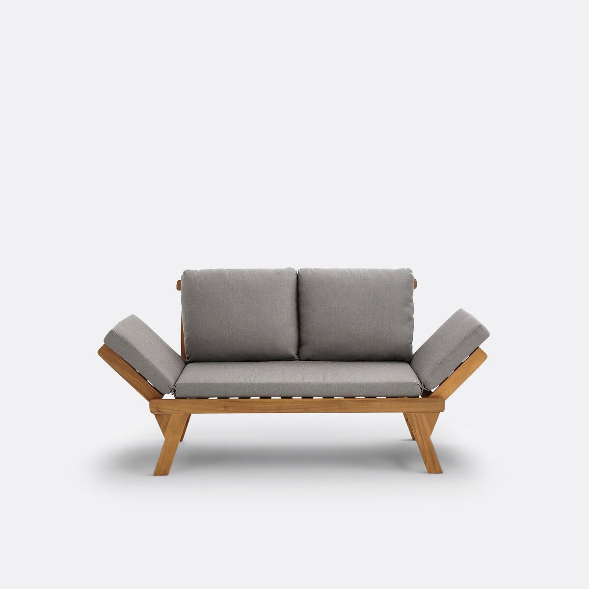 — С разложенными подлокотниками, диван трансформируется в шезлонг или кушетку или предлагает дополнительные места для сидения