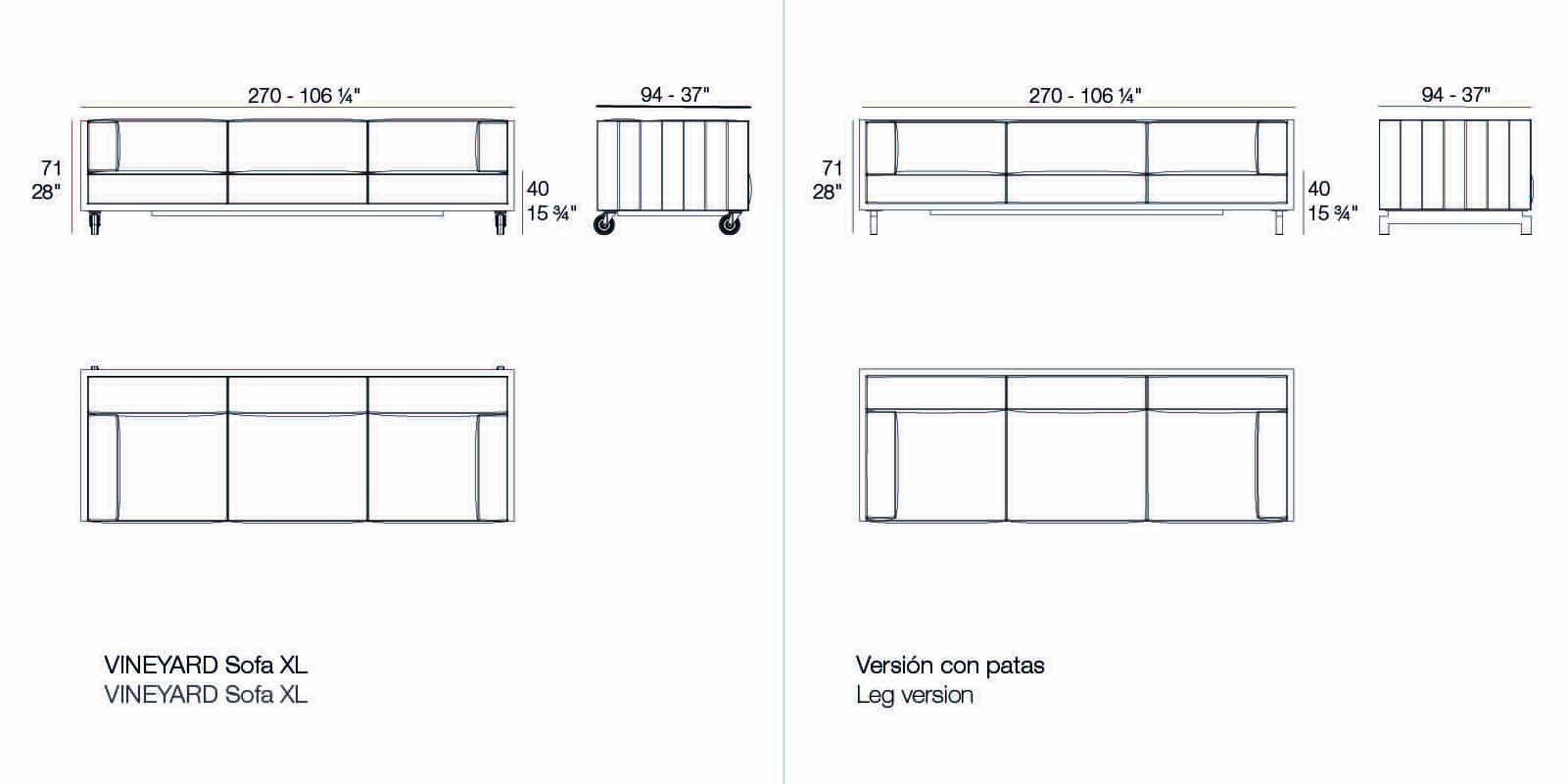 Коллекция Vineyard, разработанная Рамоном Эстеве для Vondom, вдохновлена его собственным загородным домом. Предметы интерьера задуманы в соответствии с интерьером дома, сохраняя стиль деревянных досок, обрамленных алюминием с порошковым покрытием, в сочетании с эргономичной обивкой.