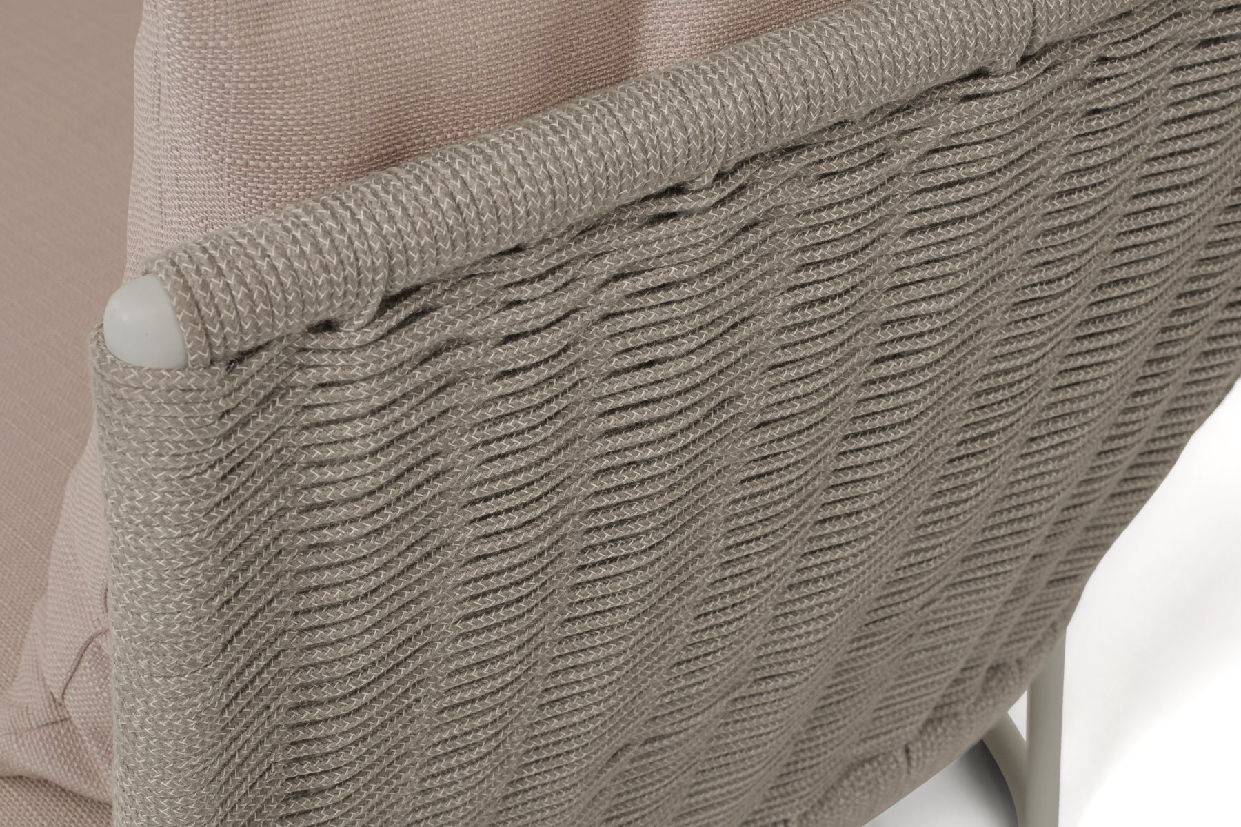 В комплекте идут удобные подушки с наполнителем и съёмными чехлами, которые обработаны водоотталкивающим составом. Материал чехлов - 100% олефин, плотностью 278гр/м2 с влагоотталкивающей пропиткой. Тип ткани - рогожка.
