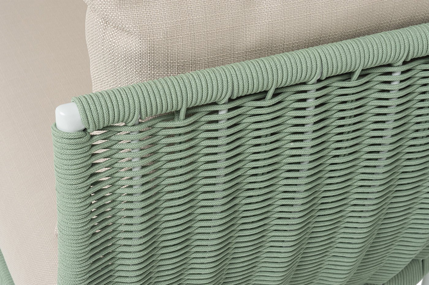 Боковины и спинка вручную оплетены роупом — эластичными синтетическими лентами из высокопрочных полиэфирных волокон. Веревка - круглый tex, придает изделию изысканный рельеф и подчеркивает ручную работу мастеров.