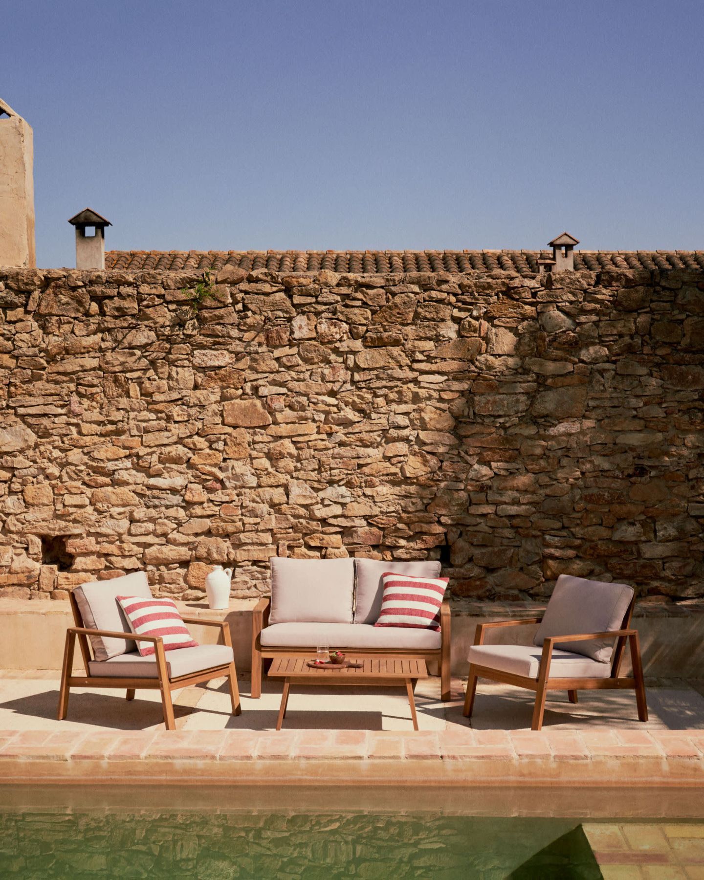 Комплект Frares состоит из 2-местного дивана, 2 кресел и журнального столика.