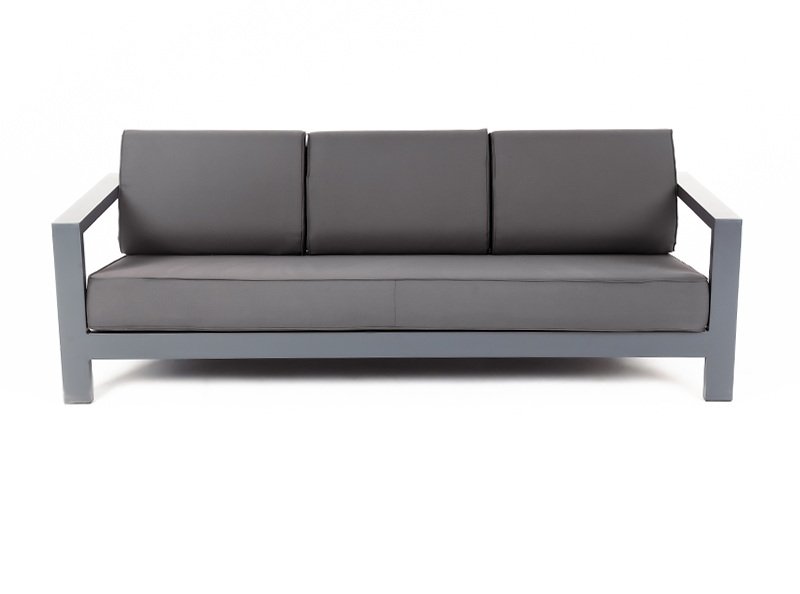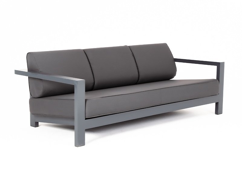 Стильный трехместный диван «Гранада» для обустройства зоны отдыха на балконе, в кафе или летней веранде. Каркас изготовлен из высокопрочного алюминия темно-серого (RAL7024) цвета.