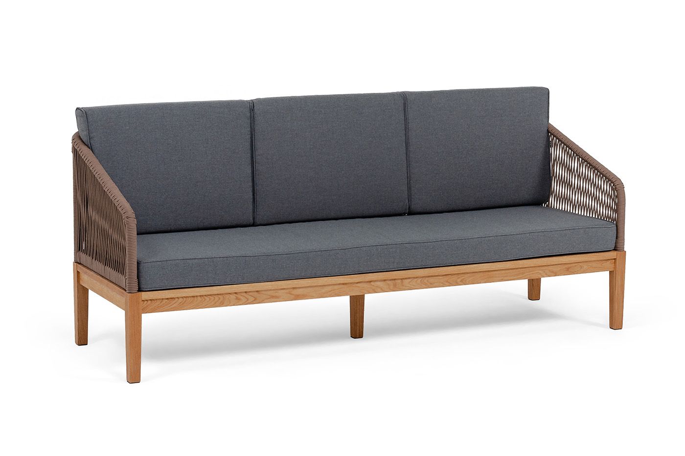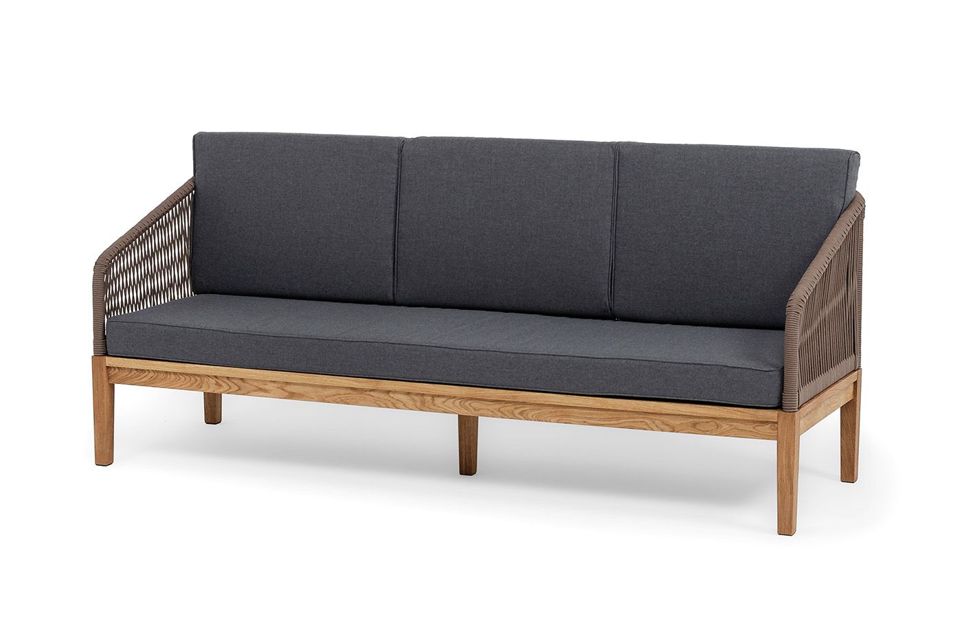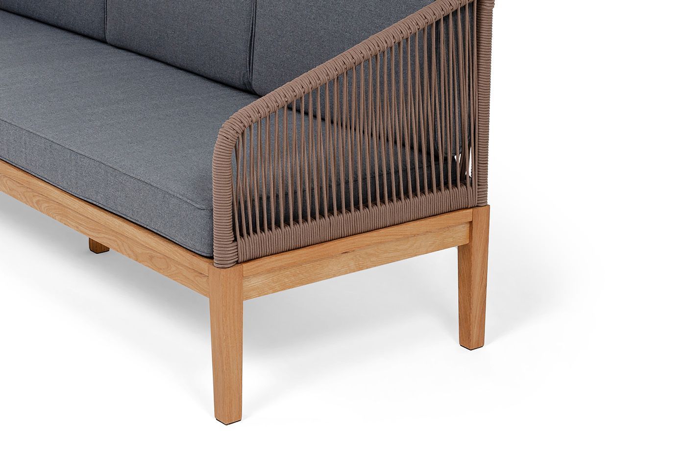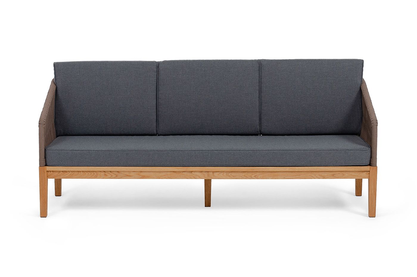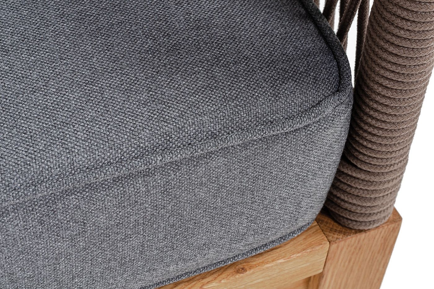 Диван имеет деревянный каркас из дуба, который обеспечивает прочность и надежность. Подушки, входящие в комплект, имеют съёмные чехлы из полиэстера 300гр/м2. Все материалы, используемые в дизайне дивана, обладают высокой прочностью и износостойкостью.