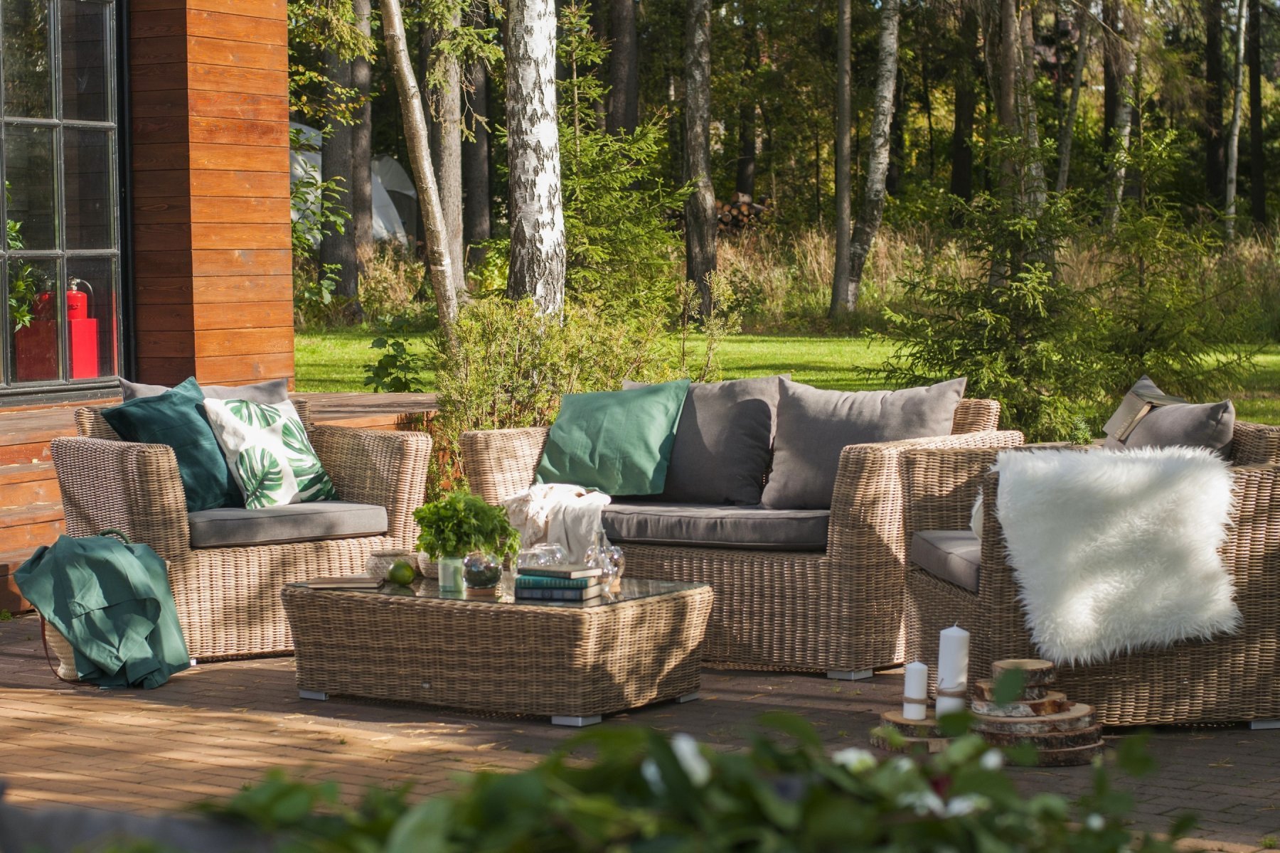 Двухместный диван дополнен несколькими подушками со съёмными серо-коричневыми чехлами. Они изготовлены из прочного полиэстера, плотность которого достигает 230гр/м2. Предусмотрена влагоотталкивающая пропитка ткани для защиты текстильных изделий от намокания.