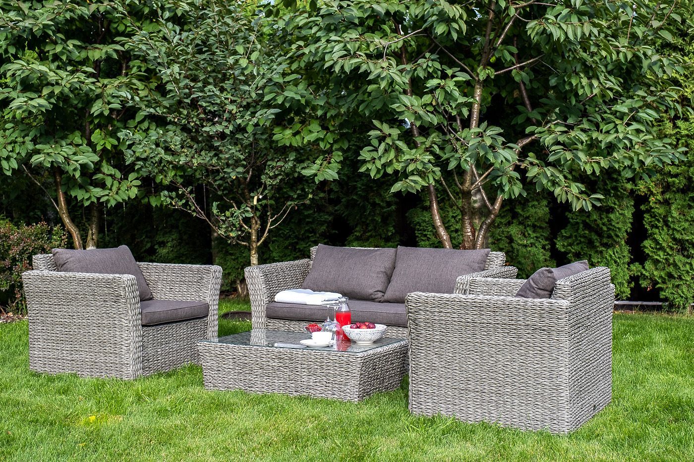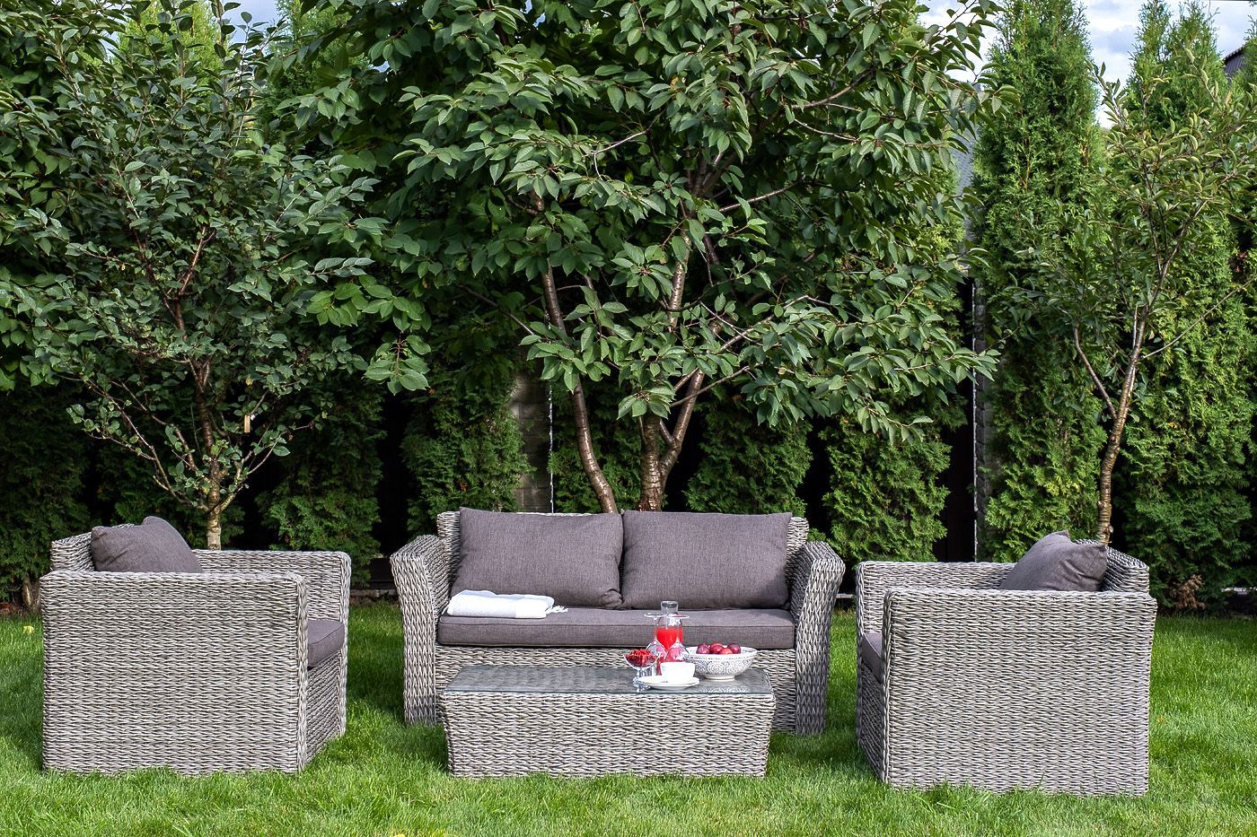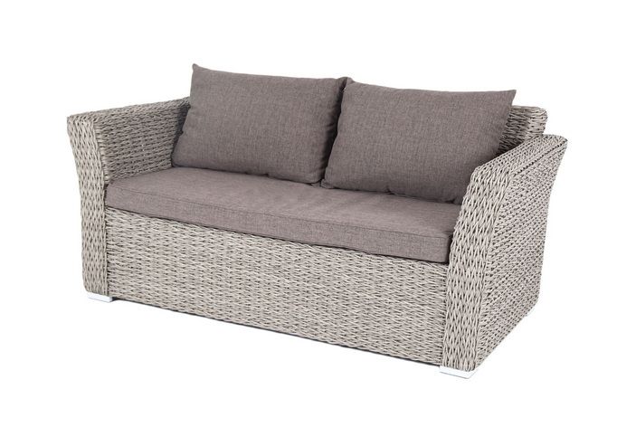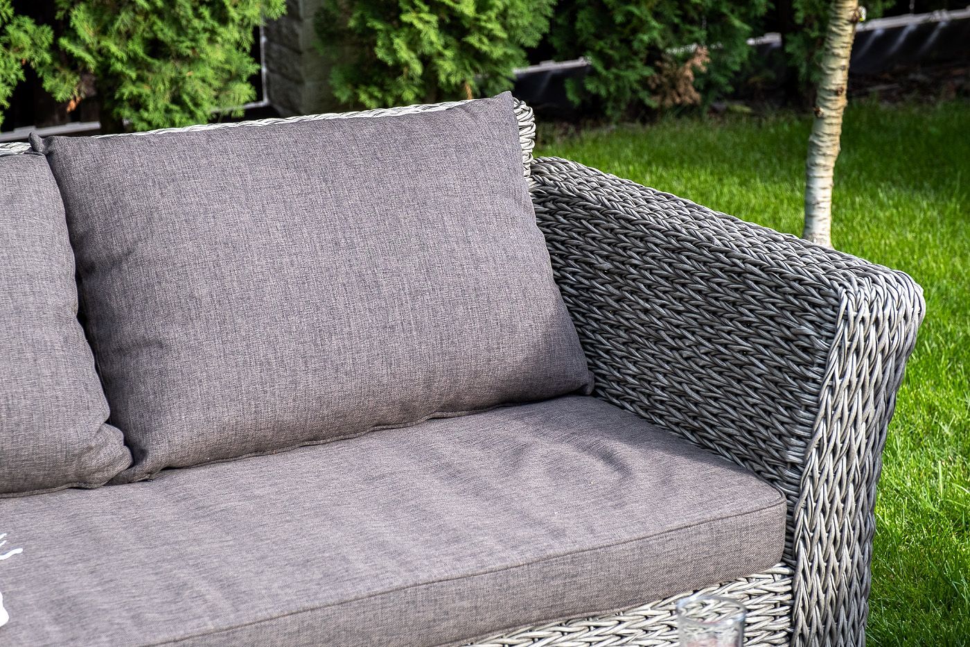 Диван выполнен из искусственного ротанга вида «гиацинт» серого цвета, оплетенного вручную.