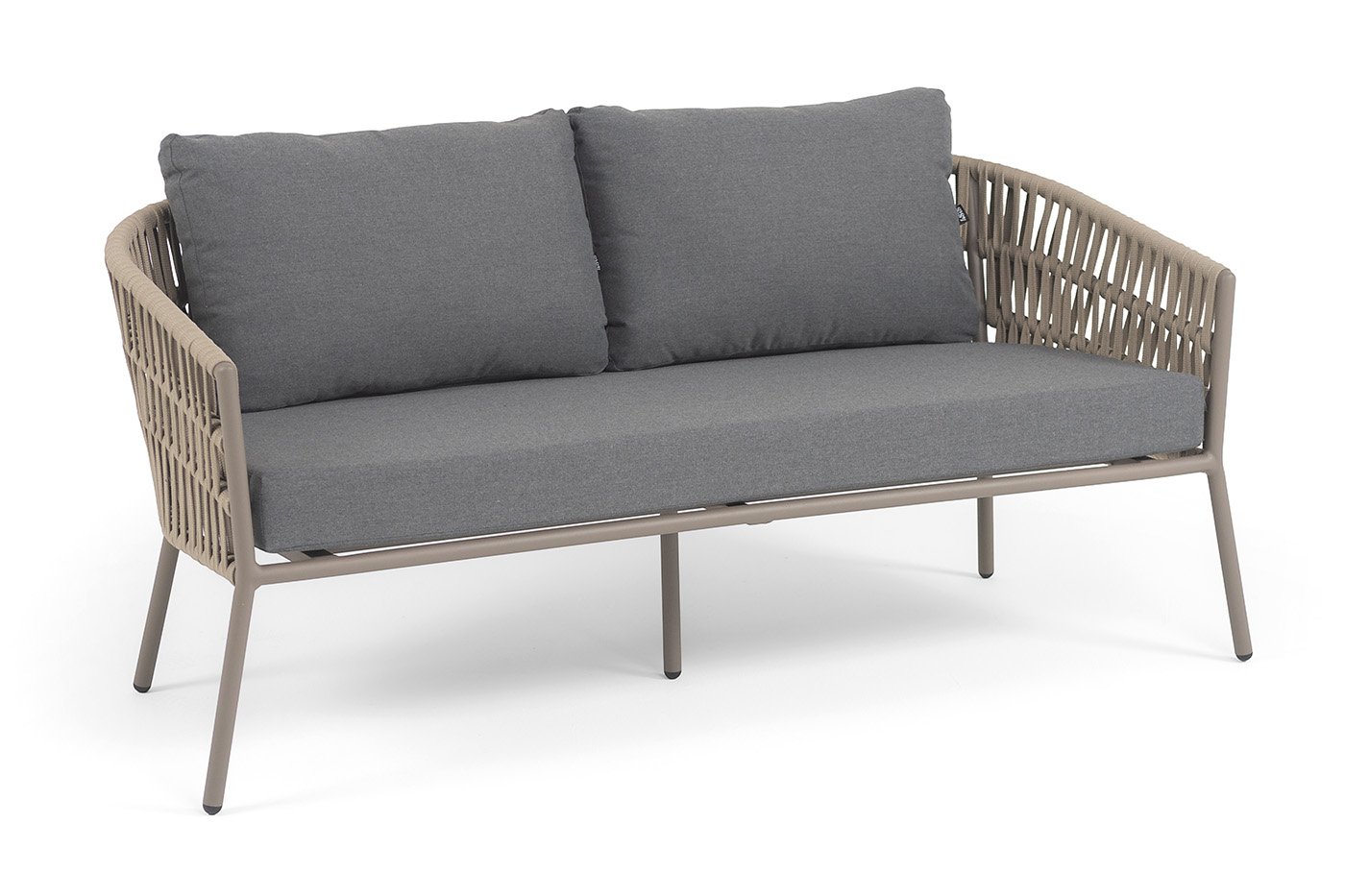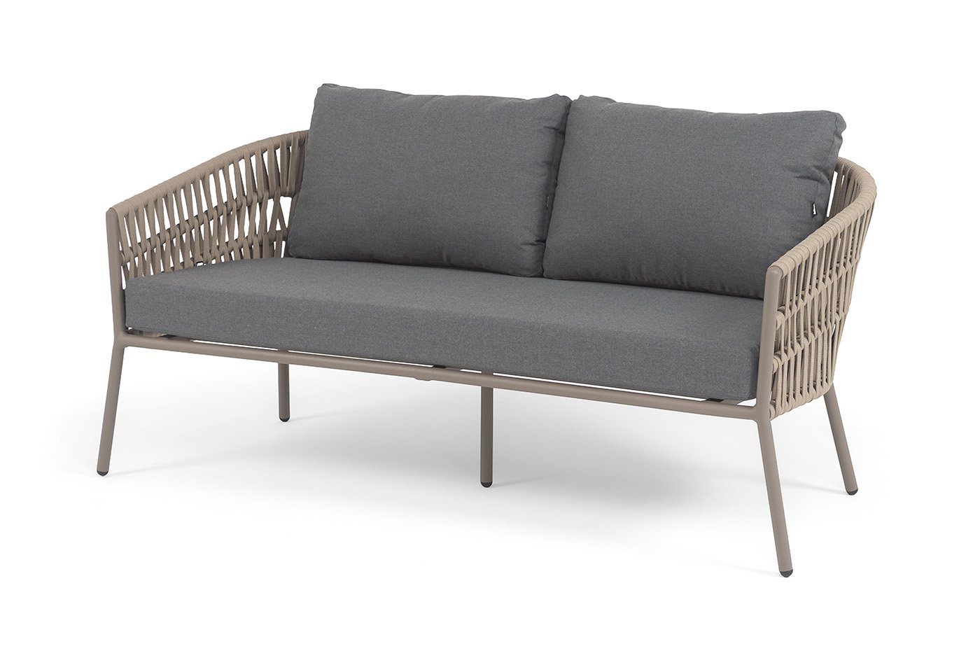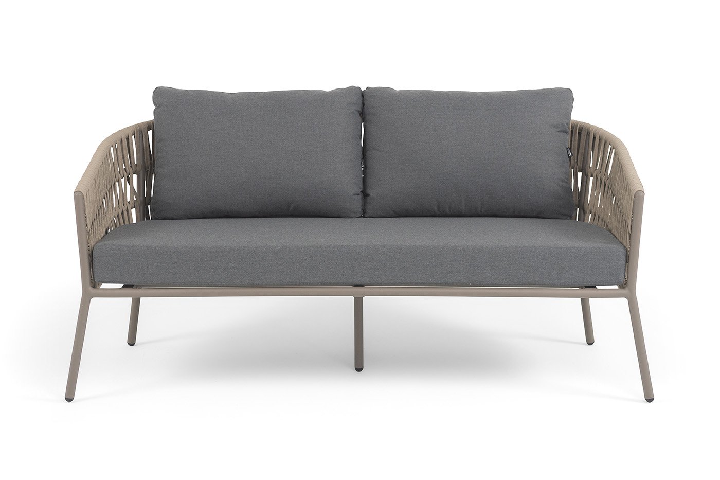 Синтетические ленты, изготовленные из высокопрочных полиэфирных волокон, образуют сложный узор, который притягивает взгляд. Серо-коричневый цвет плетения гармонично сочетается с цветом каркаса, создавая целостн