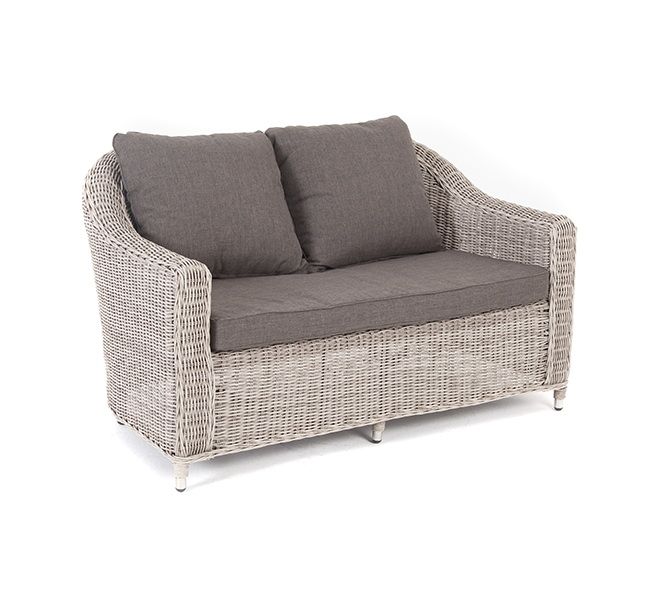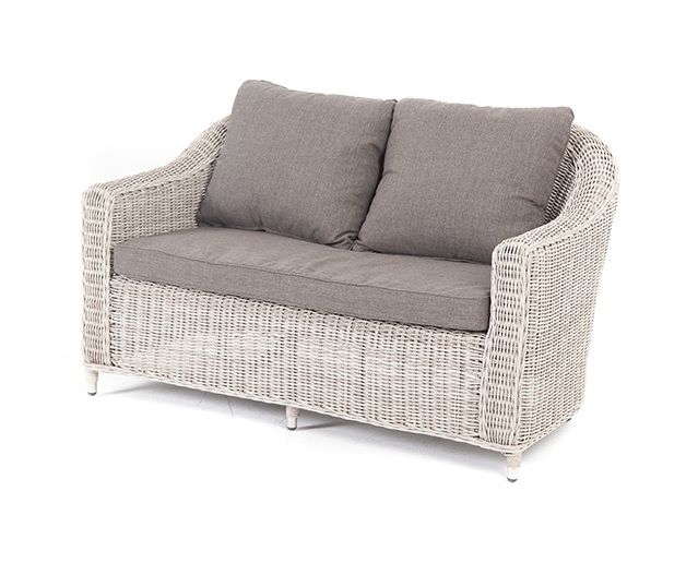 Диван из искусственного ротанга бежевого цвета «Кон Панна» дает возможность комфортно расположить две персоны благодаря комплектным подушкам из полиэстера с влагоотталкивающей пропиткой.