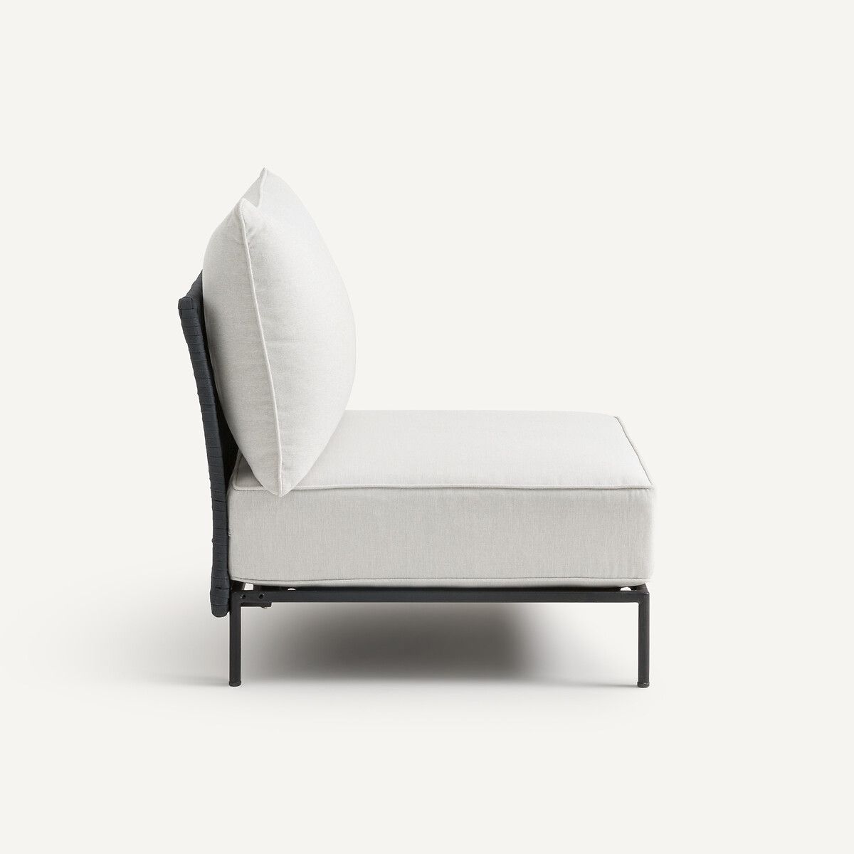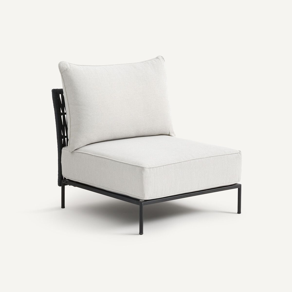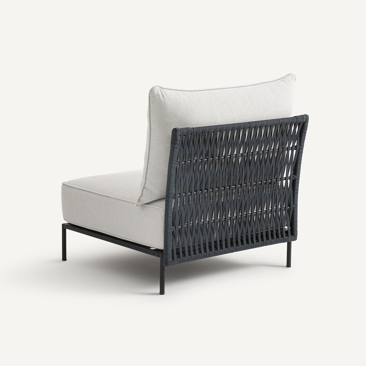 Каркас стола изготовлен из оцинкованной стали – легкого и прочного материала, упрощающего перемещение мебели с террасы в сад. Плетение ремешков вручную, обивка из узорчатой ткани, оптимальный комфорт сиденья… Коллекция Leandra объединяет все качества садовой мебели для продолжительного использования. Дизайн AMPM.