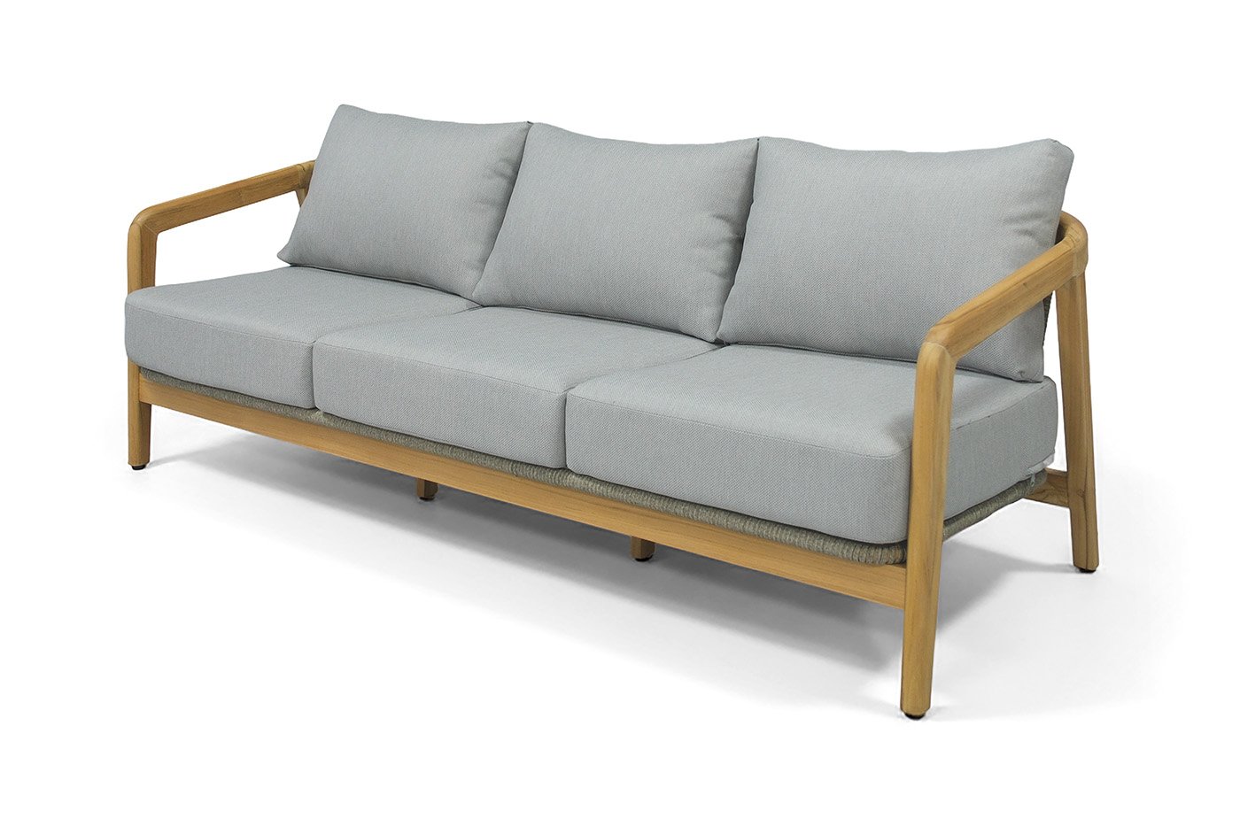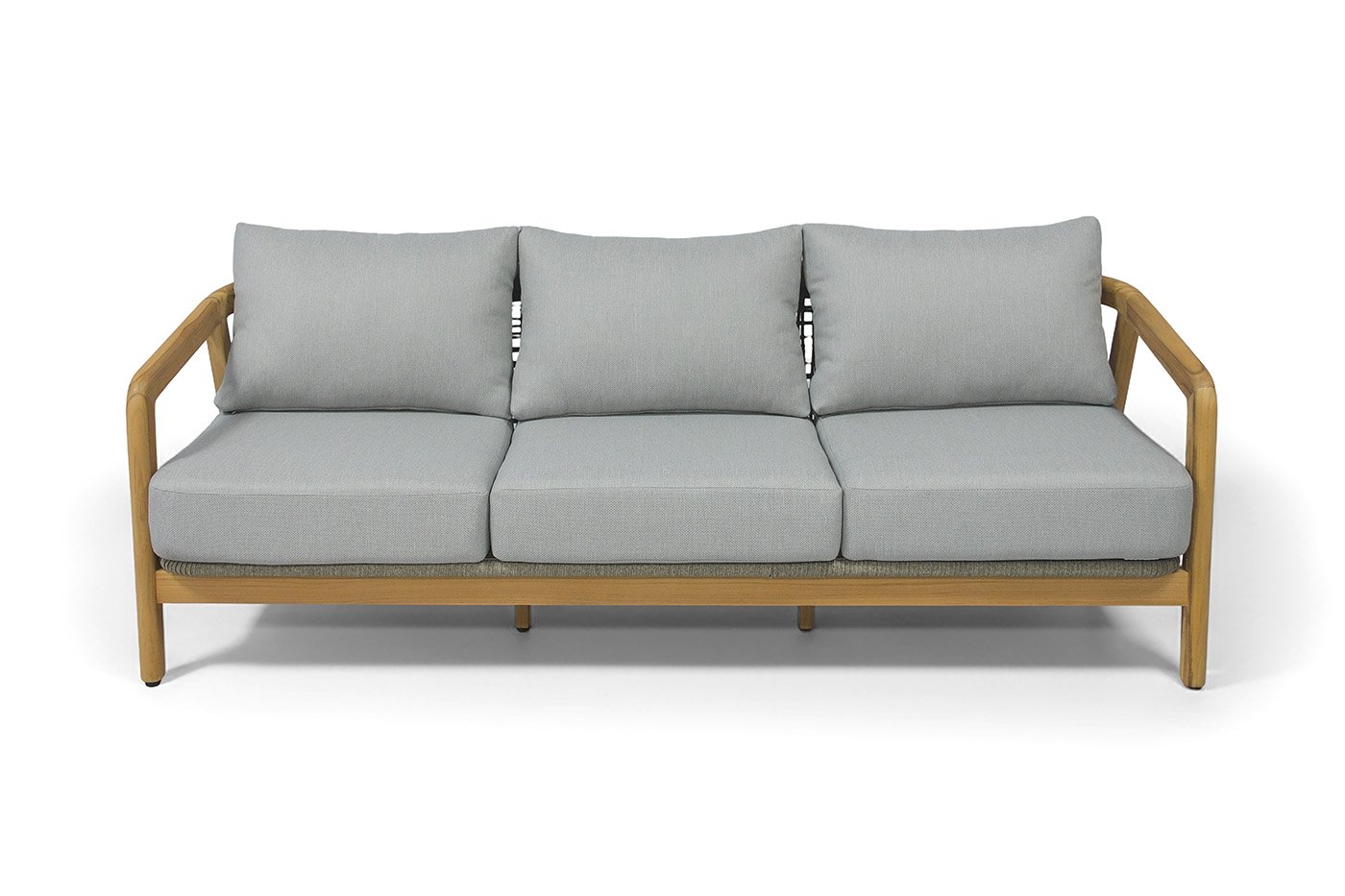 Каркас выполнен из тика — благородной древесины, известной своей прочностью, устойчивостью к внешним воздействиям и изысканной текстурой. Тёплый древесный оттенок подчёркивает природную эстетику мебели.