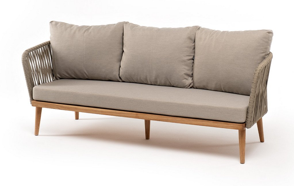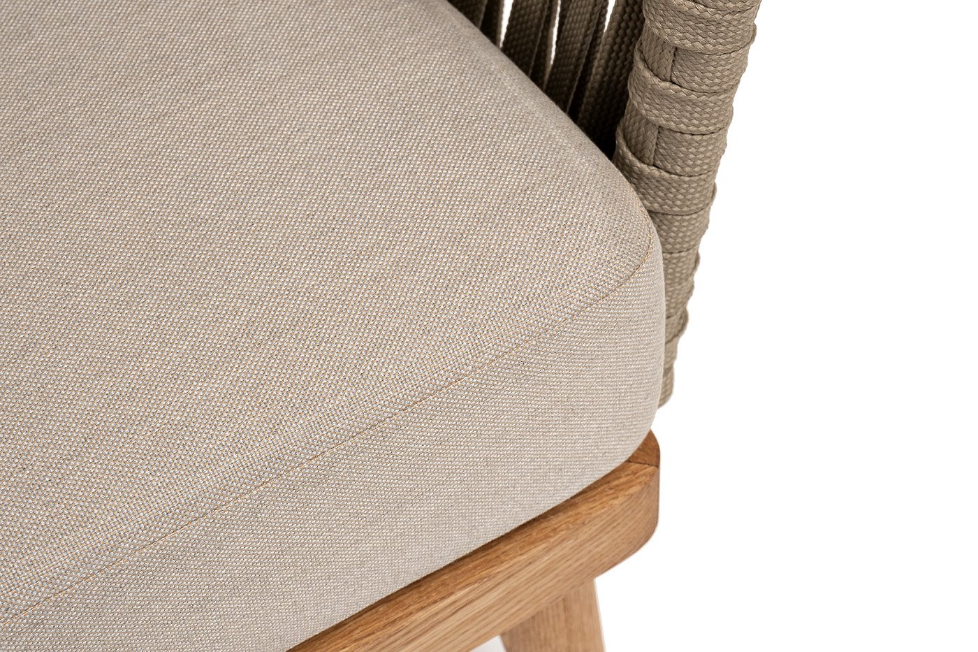 Боковины каркаса и спинка вручную оплетены роупом - эластичными синтетическими лентами, изготовленными из высокопрочных полиэфирных волокон. Цвет оплетки - серо-коричневый. Основание - дуб.