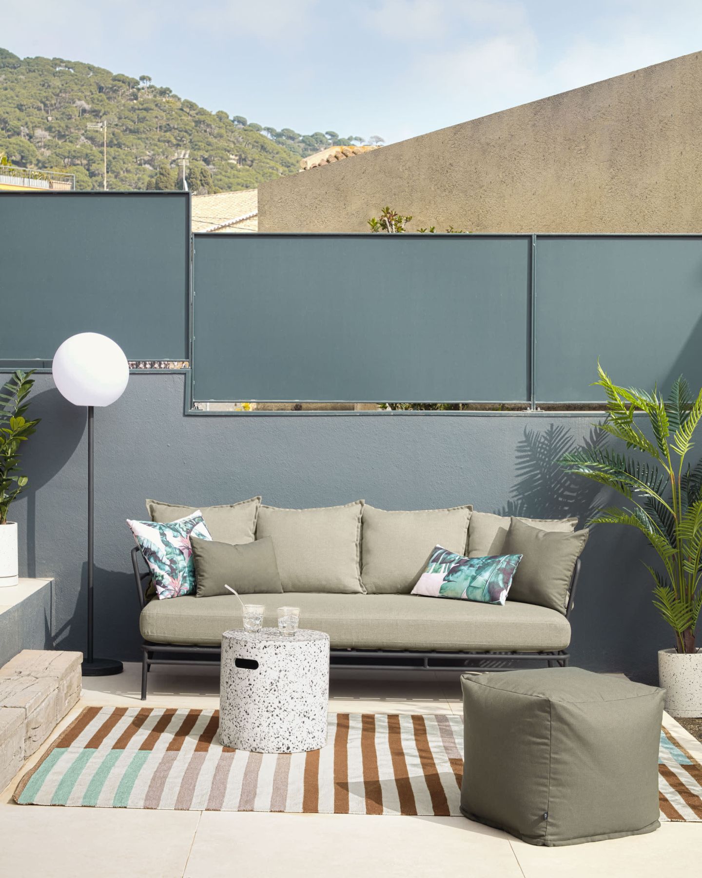 Диван Mareluz от фабрики La Forma (ex Julia Grup) – дизайн, который объединяет комфорт и динамику. Диван Mareluz создаст в вашем пространстве ощущение широты и яркости, приглашая расслабиться на открытом воздухе среди объемных подушек. Он абсолютно практичен и долговечен. Ведь здесь металл и прочный полиэстер, который можно стирать в машинке. Наслаждайтесь своим временем с комфортом вместе с Mareluz! Диван имеет сварную металлическую конструкцию, созданную из трубок диаметром 2,5 см. Она покрыта черной матовой краской, которая защищает от коррозии. Для стойкости к высоким нагрузкам, конструкция дополнительно усилена перекладинами на спинке, подлокотниках, под основанием. Максимальное давление – 300 кг. Общая вместимость – 3 человека. Для защиты напольного покрытия от повреждений, на ножках установлены пластиковые наконечники. К дивану прилагаются подушки – три вдоль спинки и одна высотой 10 см в качестве сиденья. Они серого цвета, набиты синтетической пеной. Чехлы съемные, из прочного полиэстера. Размеры: ширина – 197 см, высота спинки – 60 см, глубина – 75 см, глубина сиденья – 70 см. Вес изделия – 29,9 кг. Поставка осуществляется в собранном виде. В коллекции Mareluz также представлено кресло в аналогичном дизайне.